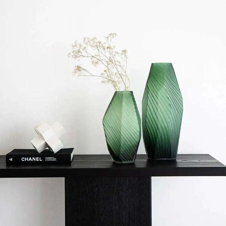 مزهريتين زجاجيتين بتصميم غير منتظم تأتي بأحجام مختلفة وتعتبر واحدة من أفضل التصاميم لدينا.