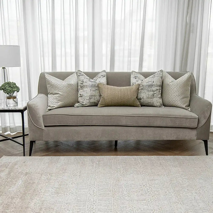 نقدم لكم هذه المجموعة السحرية التي ستمنح لمسة من الأناقة إلى غرفة معيشتك. تأتي بوسادتان على شكل ماسة فضية، ووسادتان باللون الرمادي والكريمي ووسادة مربعة باللون البني.