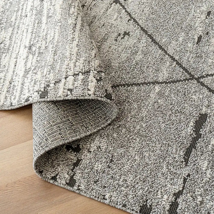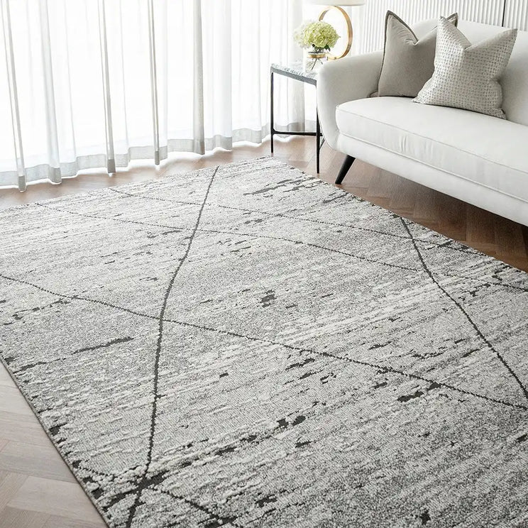 سجادة بنمط الخطوط المميز باللون الرمادي لتضيف لمسة من التصميم العصري مع التصميم الداخلي البسيط.