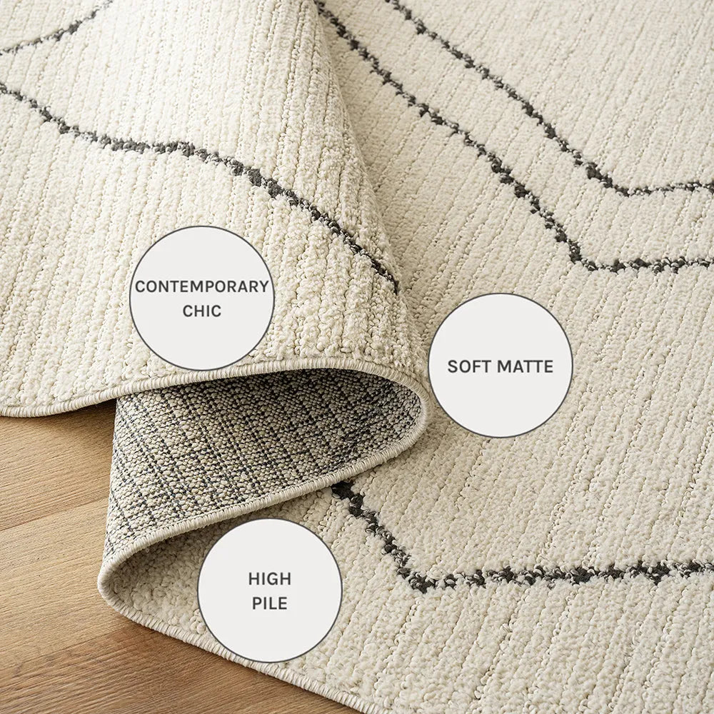 تتميز هذه السجادة الحديثة بنمط مرسوم بالخط لمظهر حديث