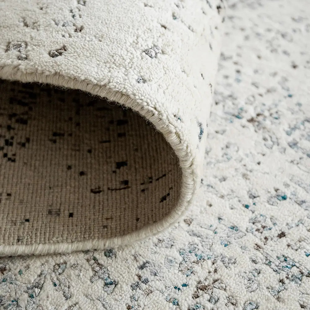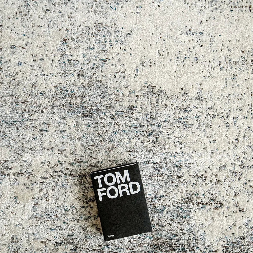 سجادة بدرجات من ألوان اللؤلؤ والرمادي وتصميم لامع لإضافة لمسة فاخرة إلى ديكورك العصري.