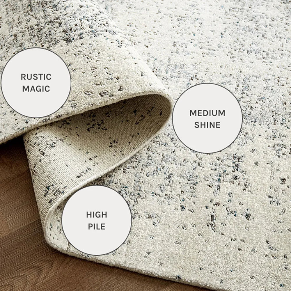 هذه السجادة مصنوعة من مزيج ملموس من الحرير الصناعي، والصوف والقطن مع وبر كثيف عالي من أجل النعومة.