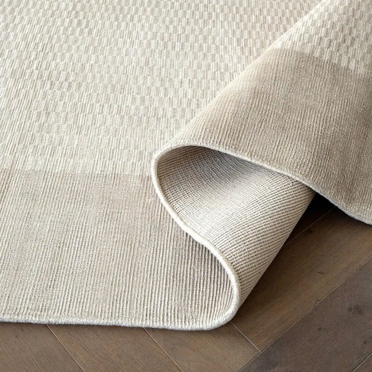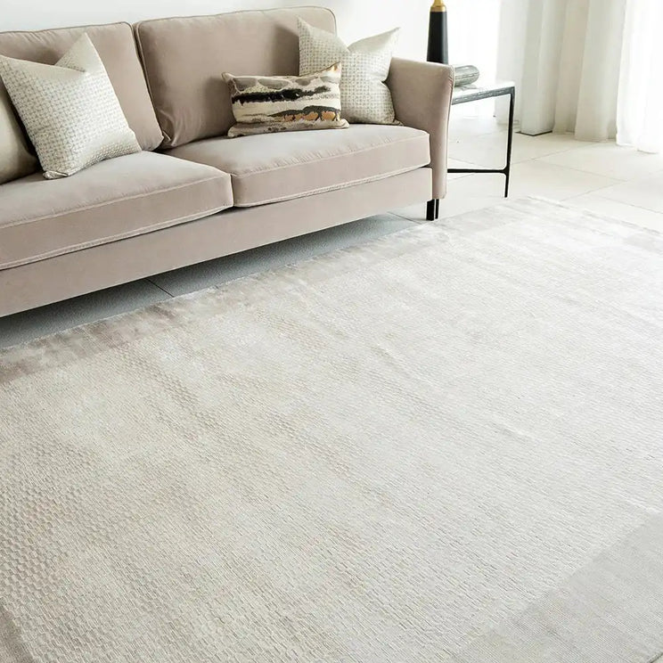 سجادة بتصميم اومبري رقيق وناعم باللون البيج توفر لمسة عصرية.