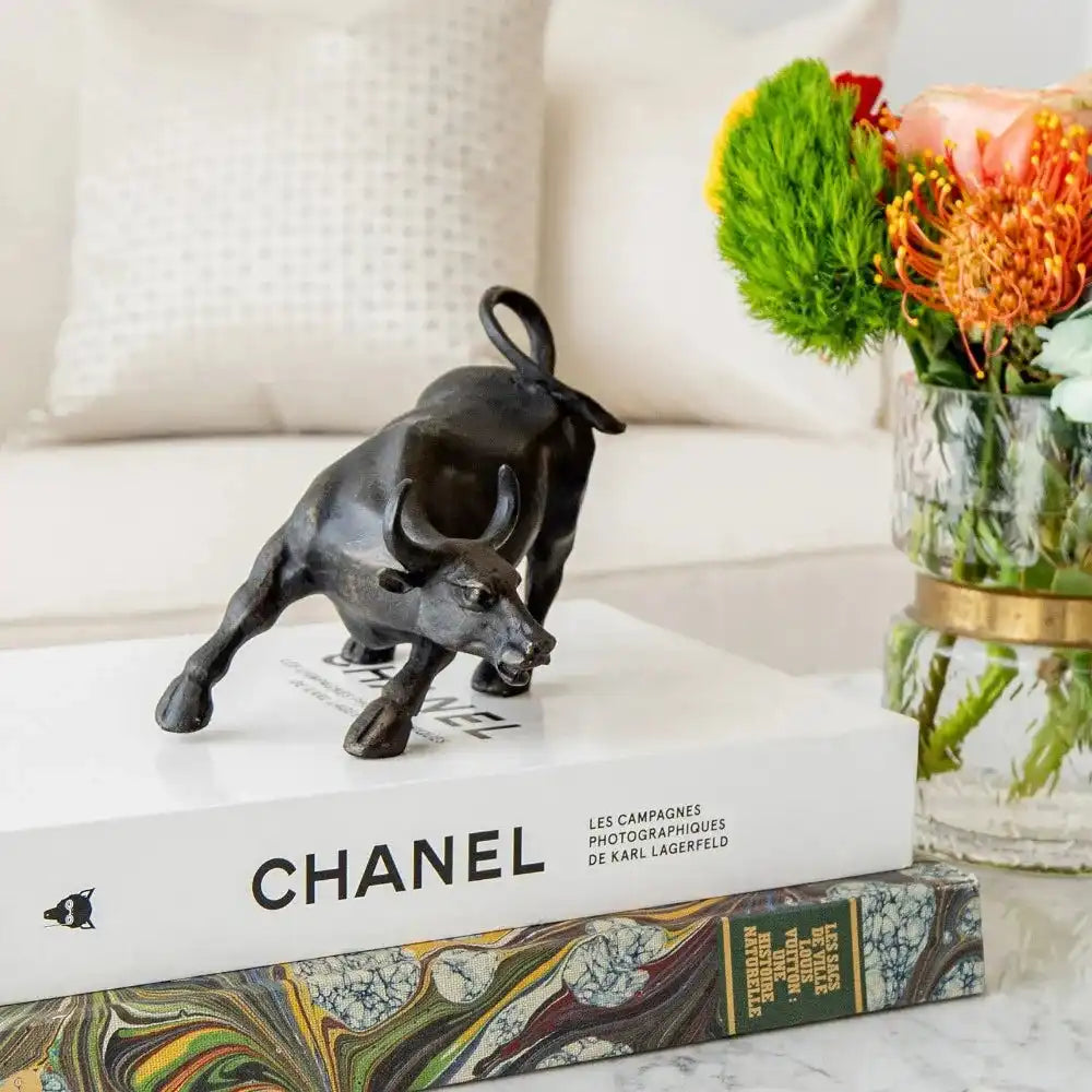 التصميم: تمثال الثور باللون البرونزي الداكن