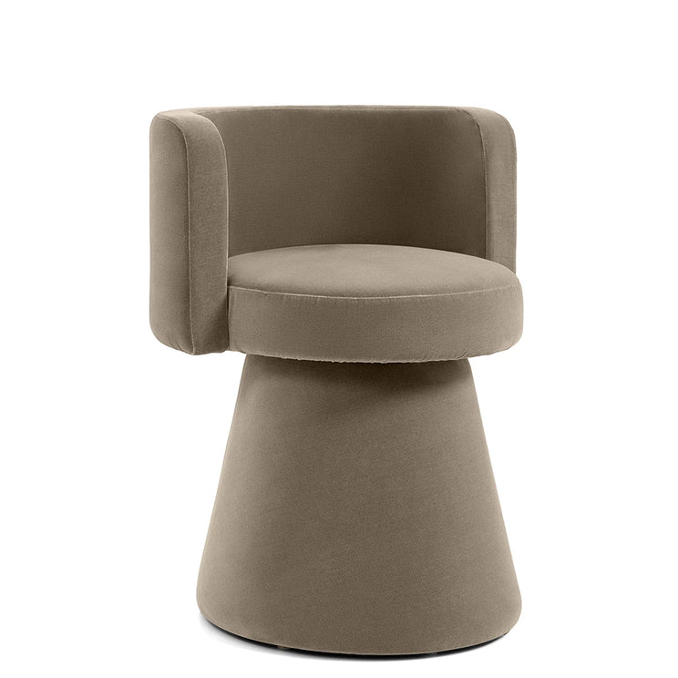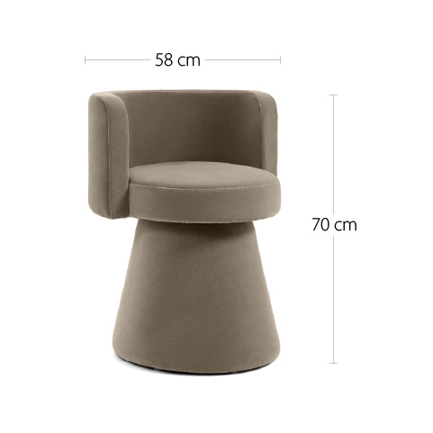 التصميم: كرسي دوّار بني بقاعدة مخروطية وتنجيد مخملي.