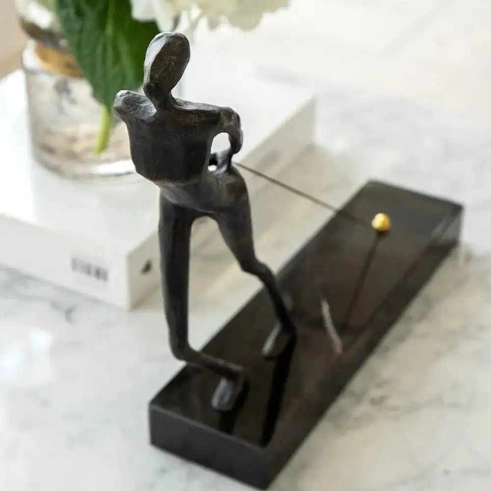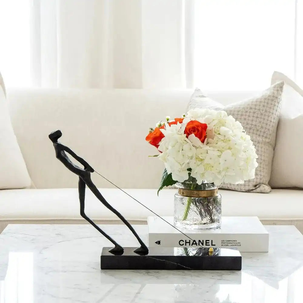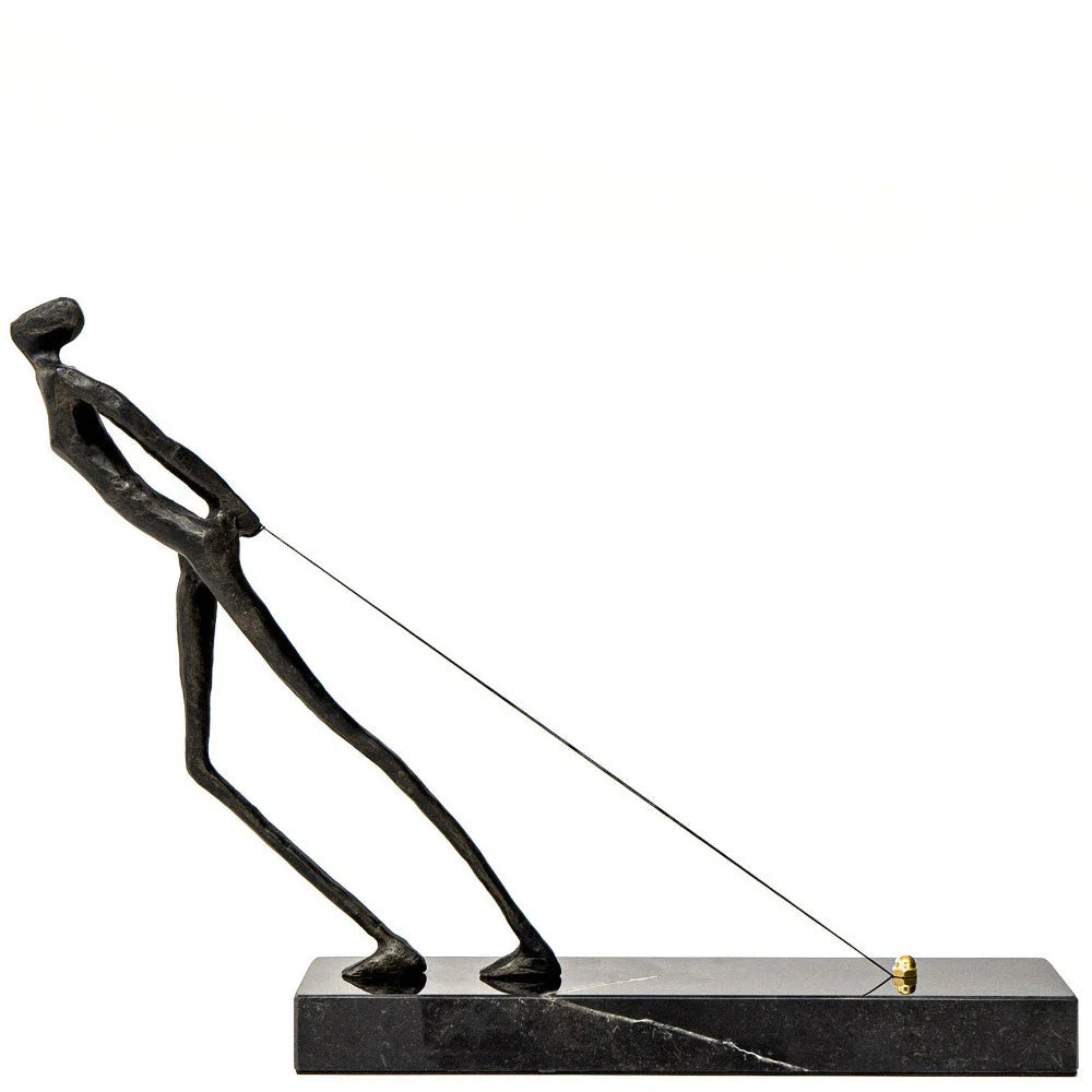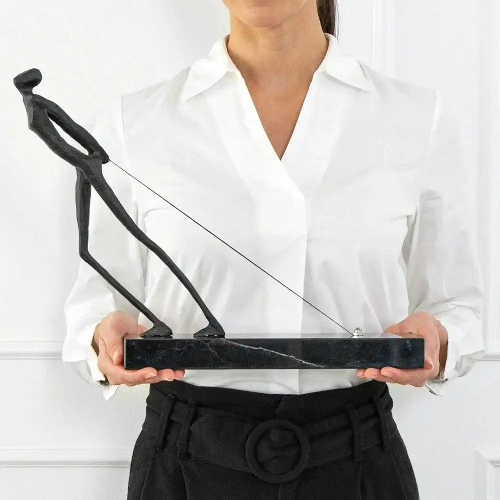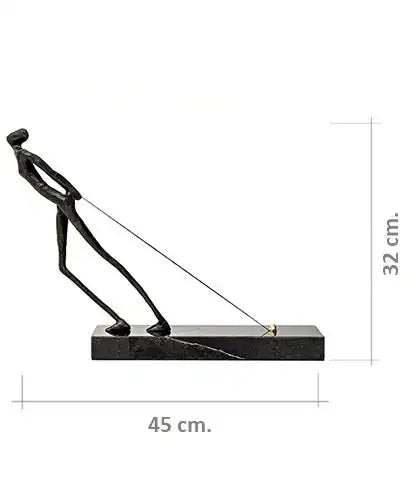 تمثال على شكل شخص يسحب كتلة صلبة من الذهب على قاعدة رخامية إضافة رائعة إلى ديكور منزلك المميز.