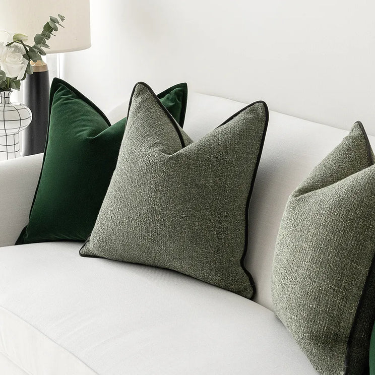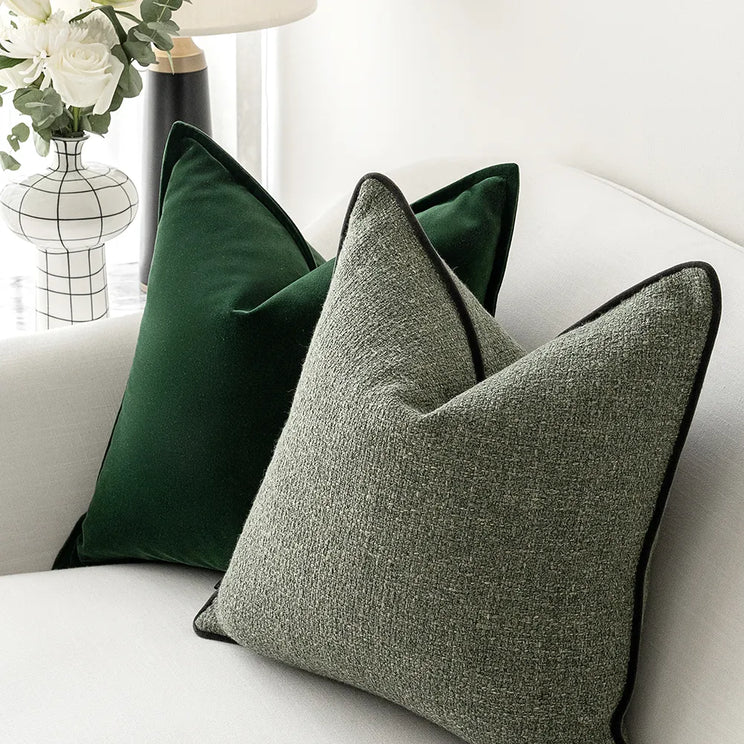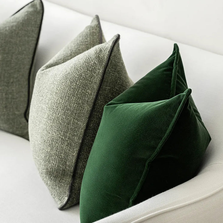 التصميم: وسادتان من المخمل الأخضر ووسادتان من الجاكار الأخضر