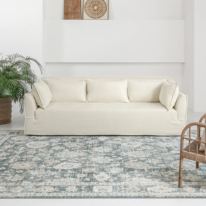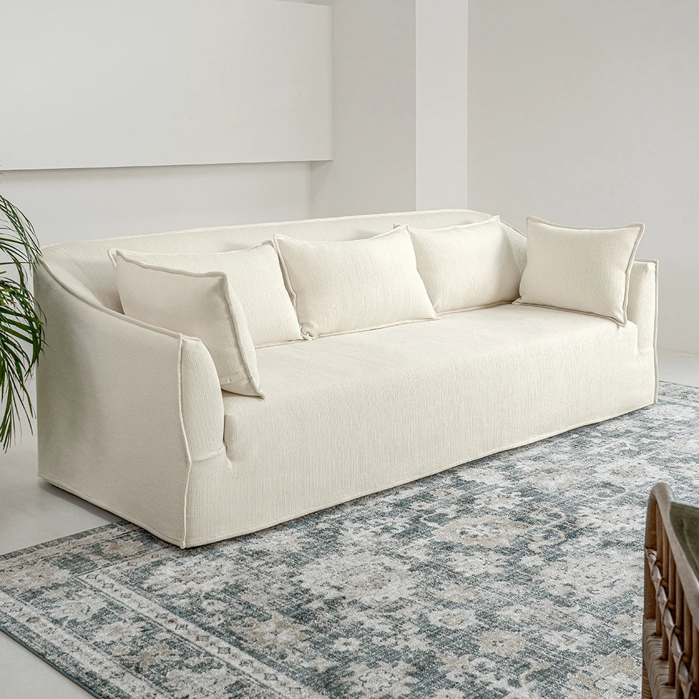 استرخِ تمامًا، فقد اكتشفت الأريكة الأكثر أناقة في المدينة. بمسند ظهر منخفض ومقعد عميق مصمم لتستمتع بأجواء الاسترخاء، تمزج هذه الأريكة باللون العاجي بين التصميم البسيط والراحة الفائقة.
