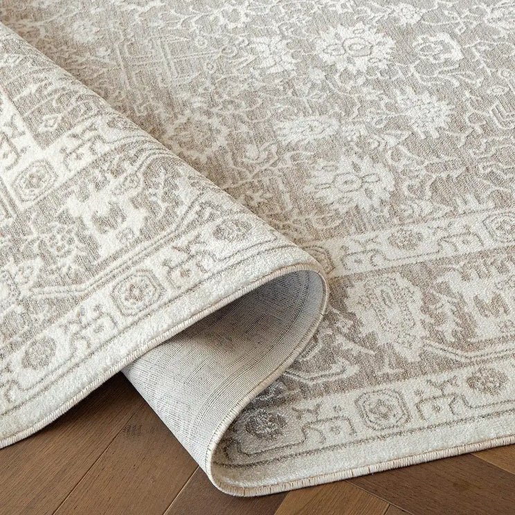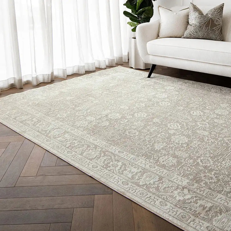 سجادة باللون البني الفاتح والرمادي الفاتح وبتصميم كلاسيكي ليتماشى مع ذوقك الرفيع.