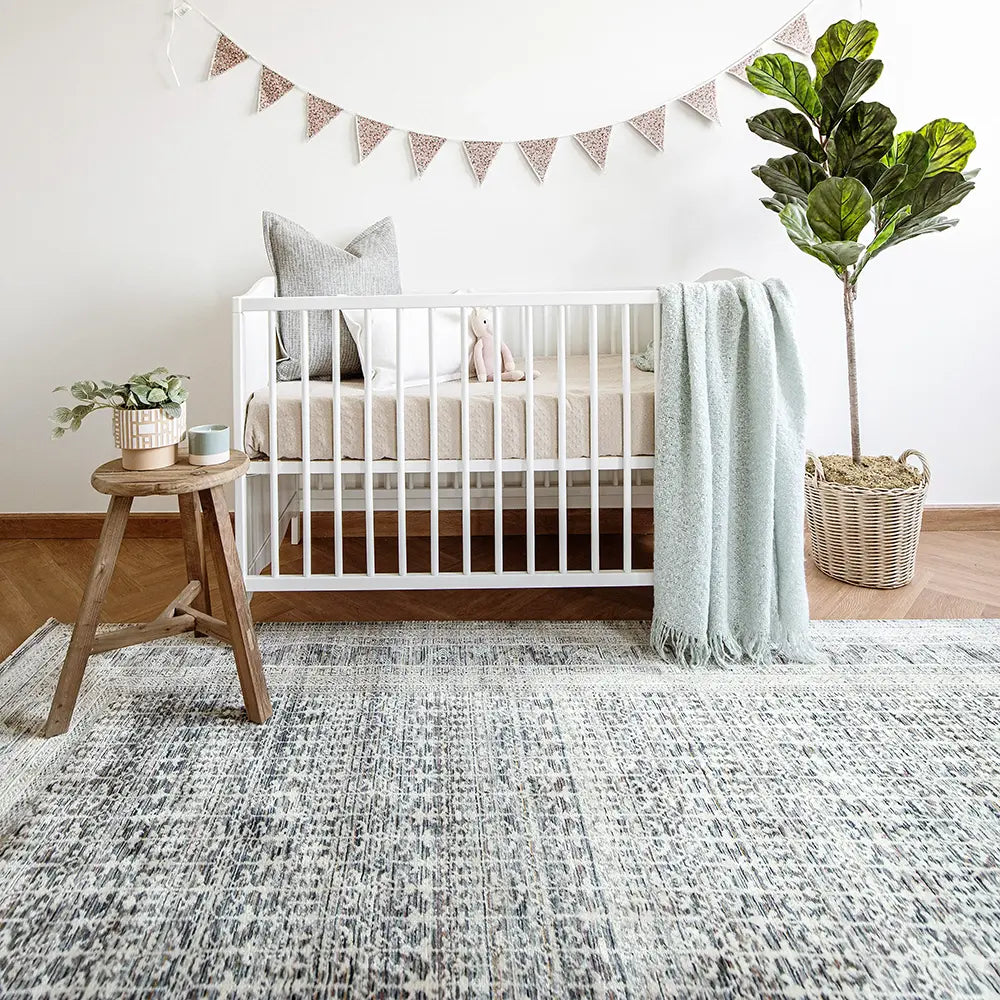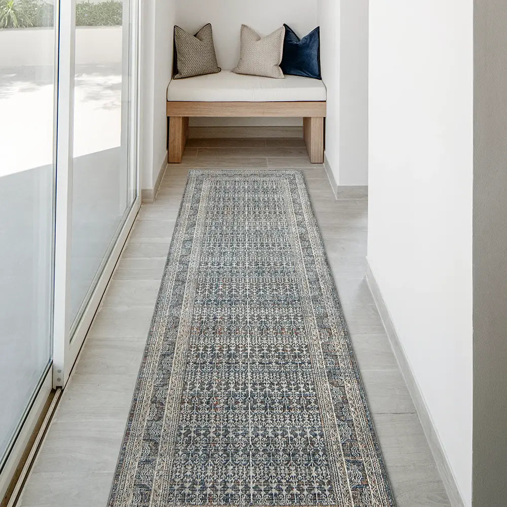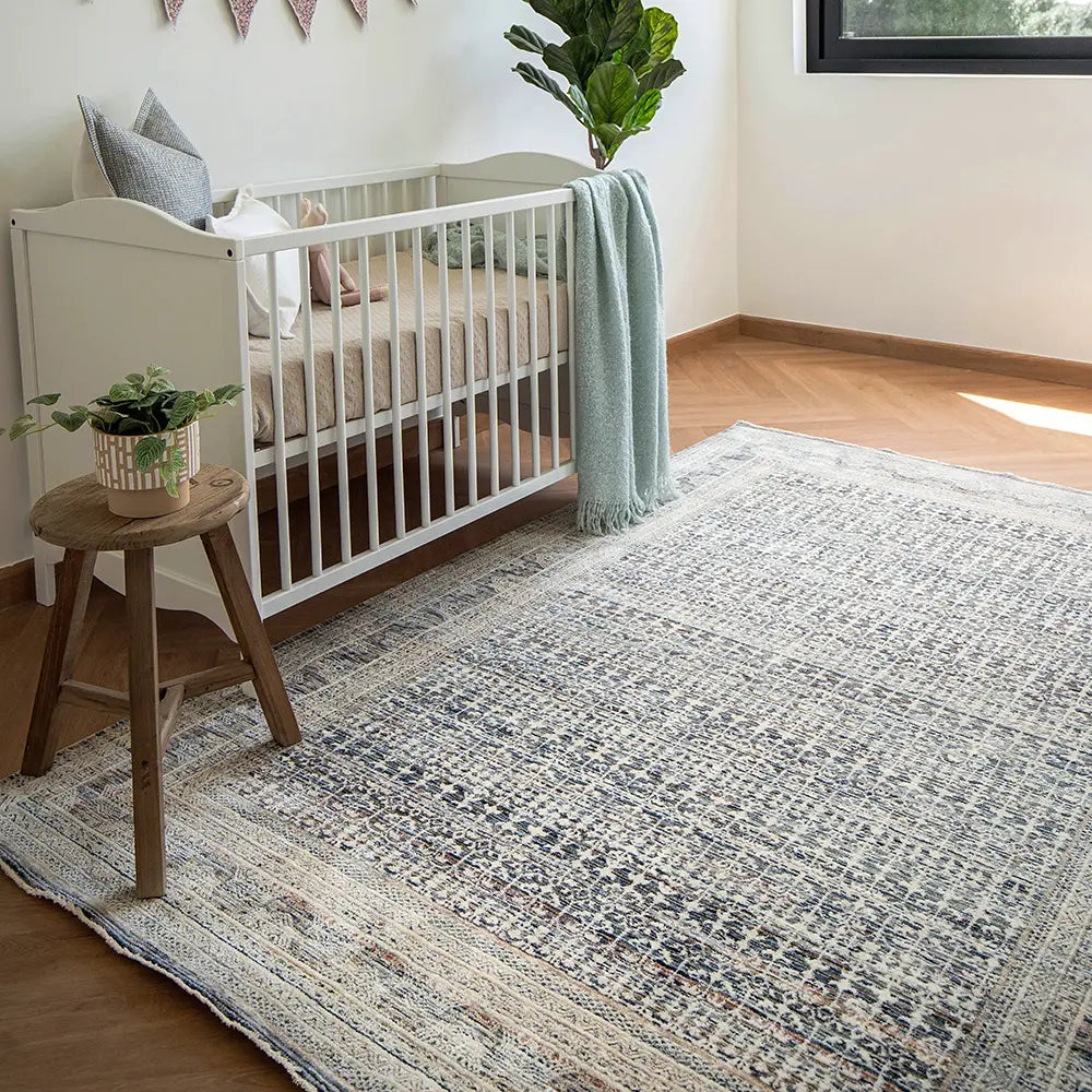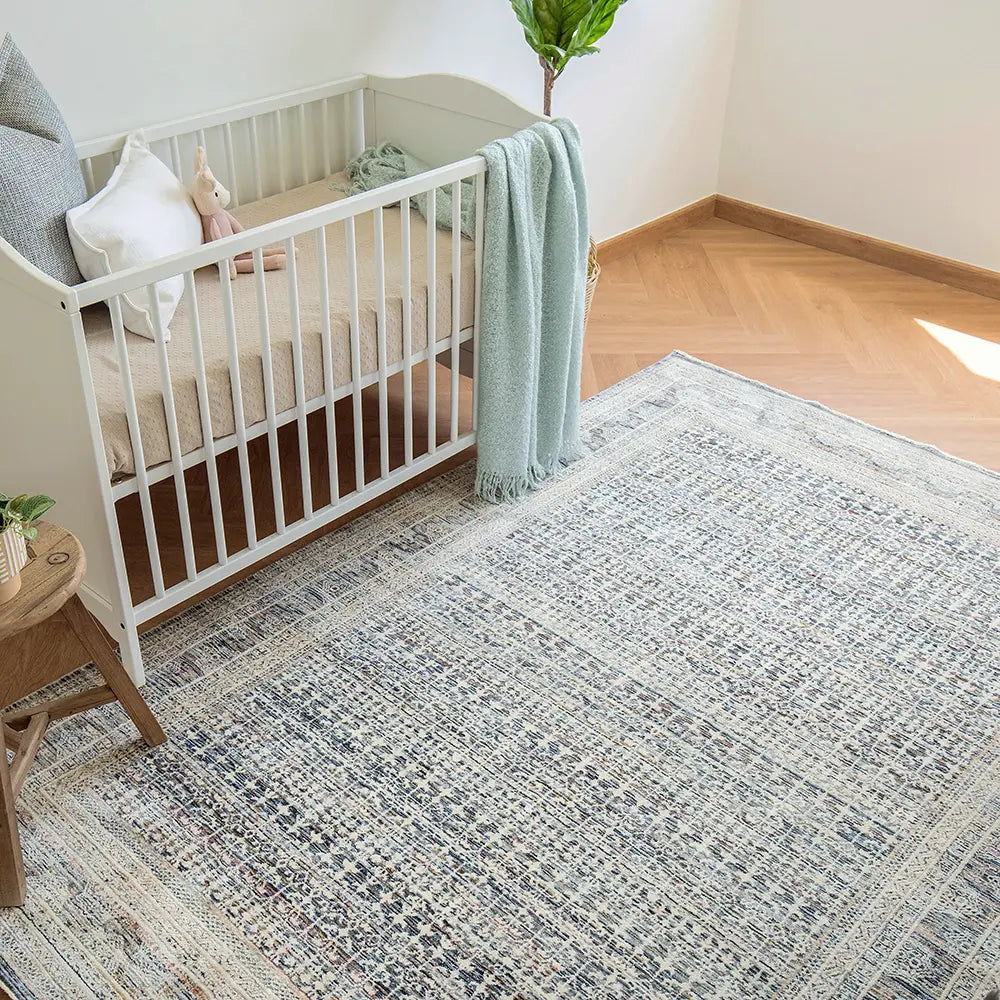 سجادة باللون الباهت والألوان العصرية بمزيج من التصميم الكلاسيكي المميز.