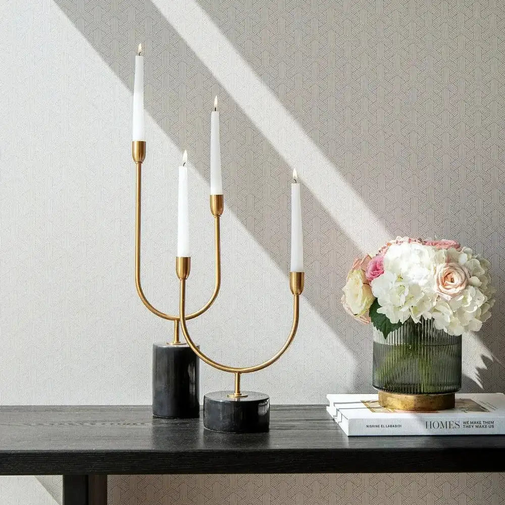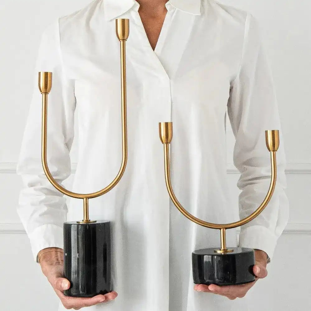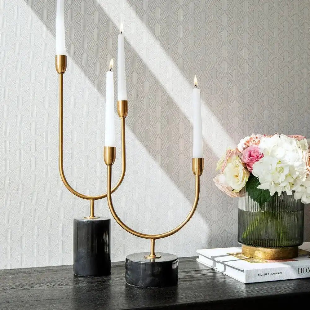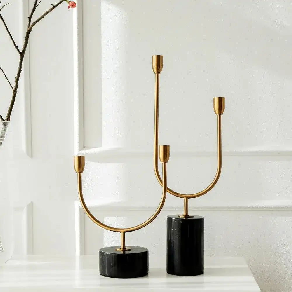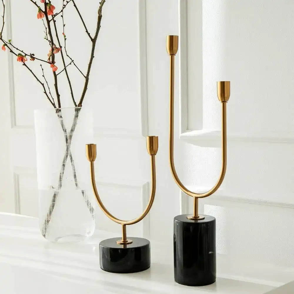 حاملي شموع على شكل حرف U على قاعدة رخامية يمنح لمسة من الأناقة إلى منزلك.