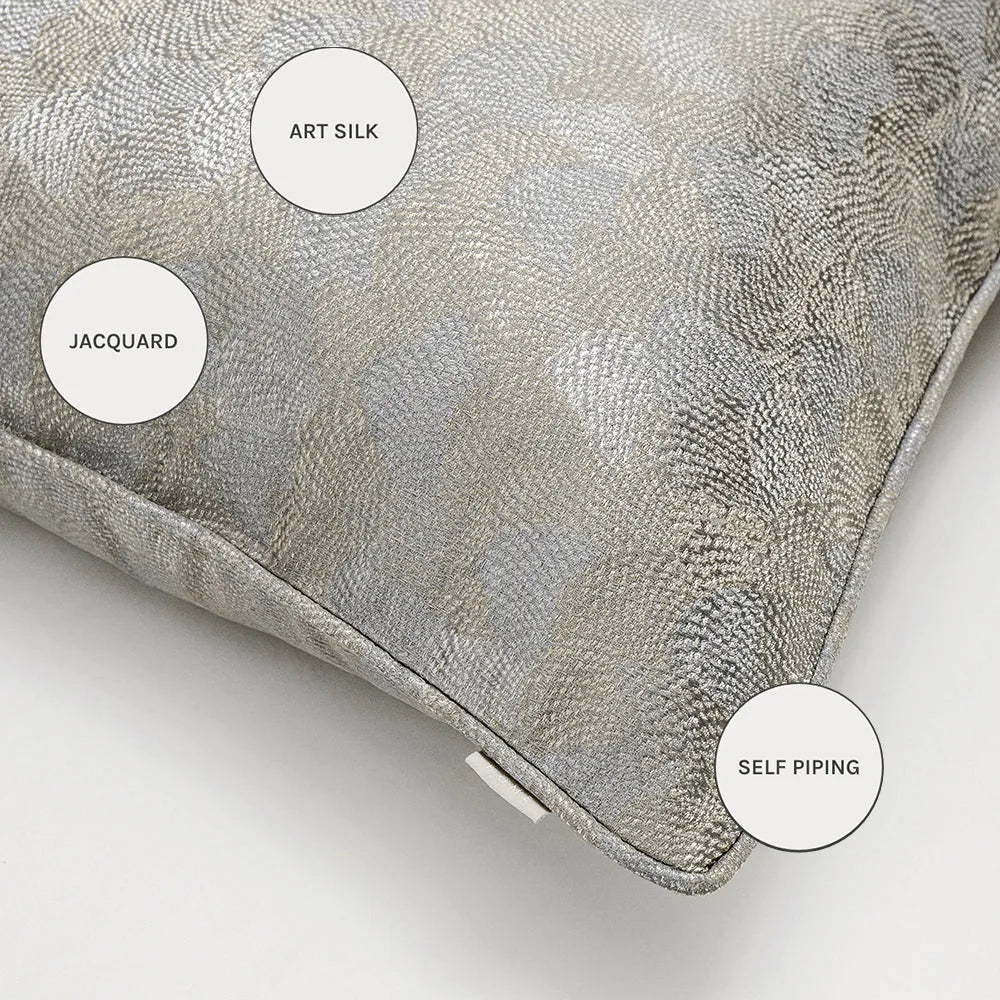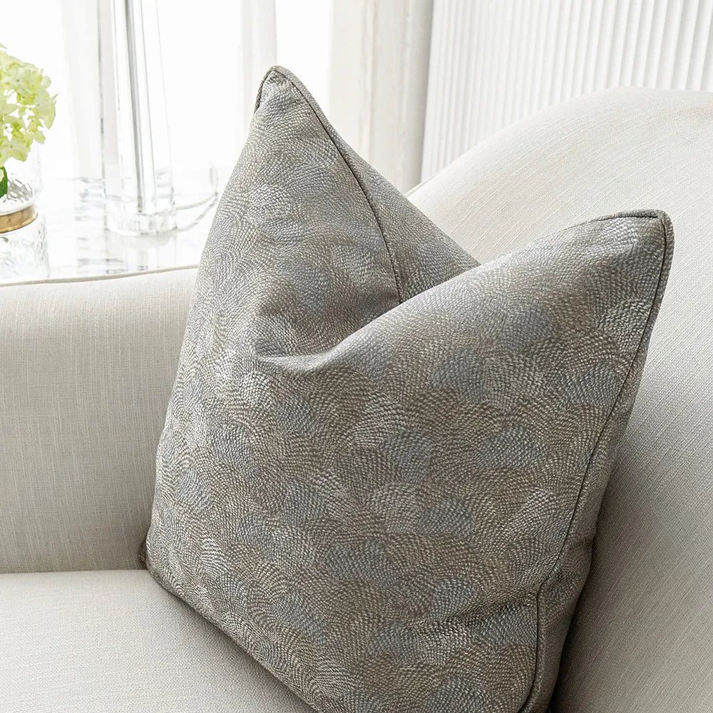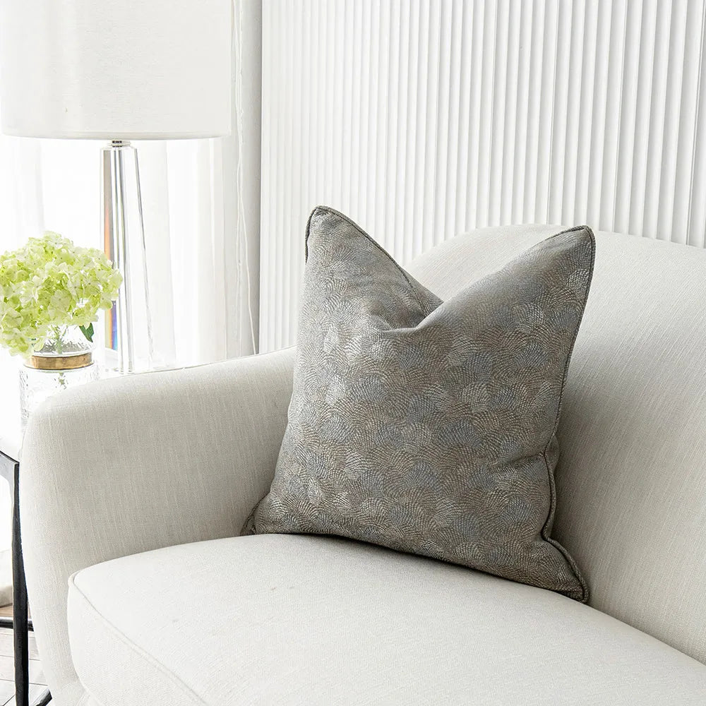 تأتي وسادة نينا لورانت بنمط الصدف المميز، وهي خيار فاخر لغرفة معيشتك. تتميز الوسادة ذات اللون الرمادي الفضي بتصميم مزخرف وفريد من نوعه.