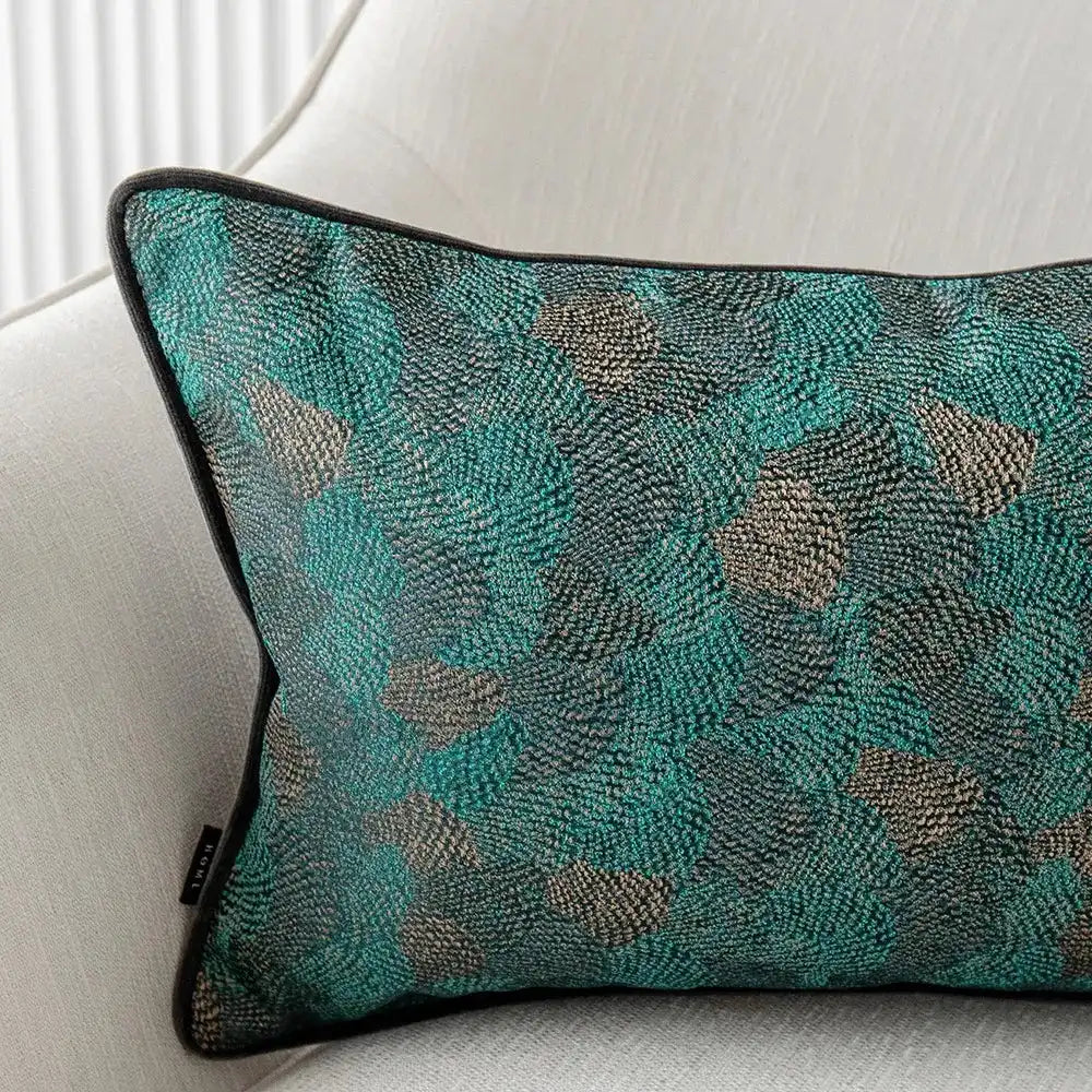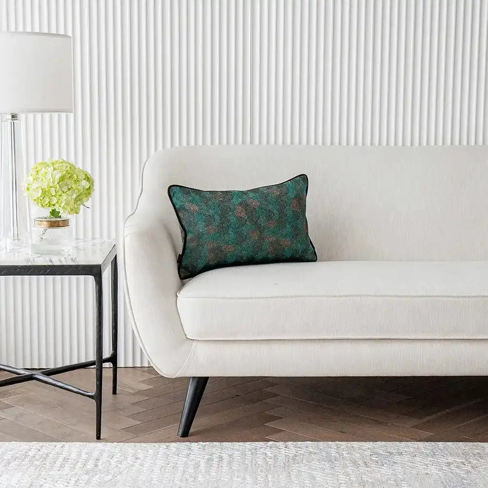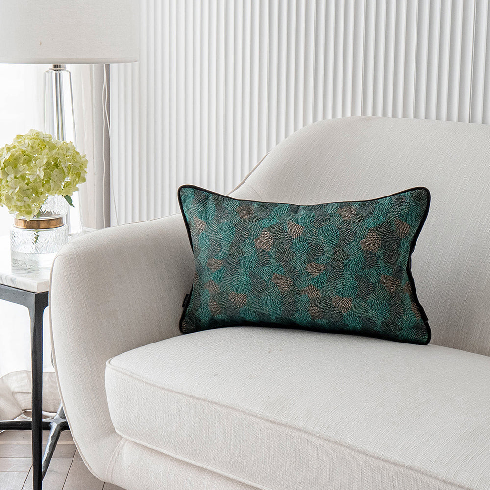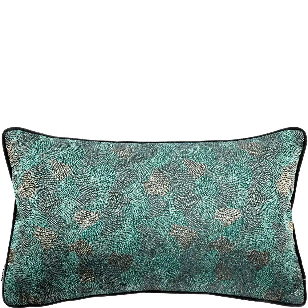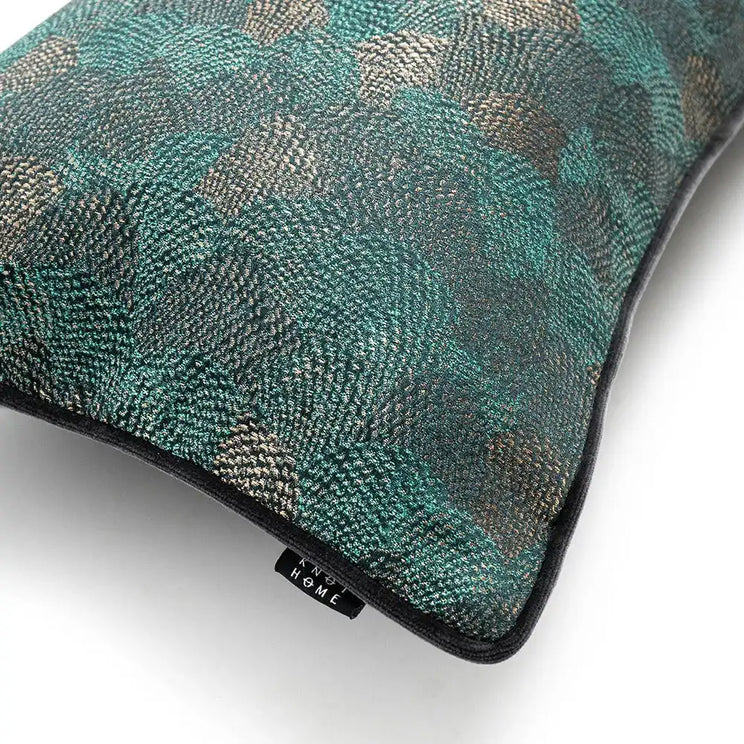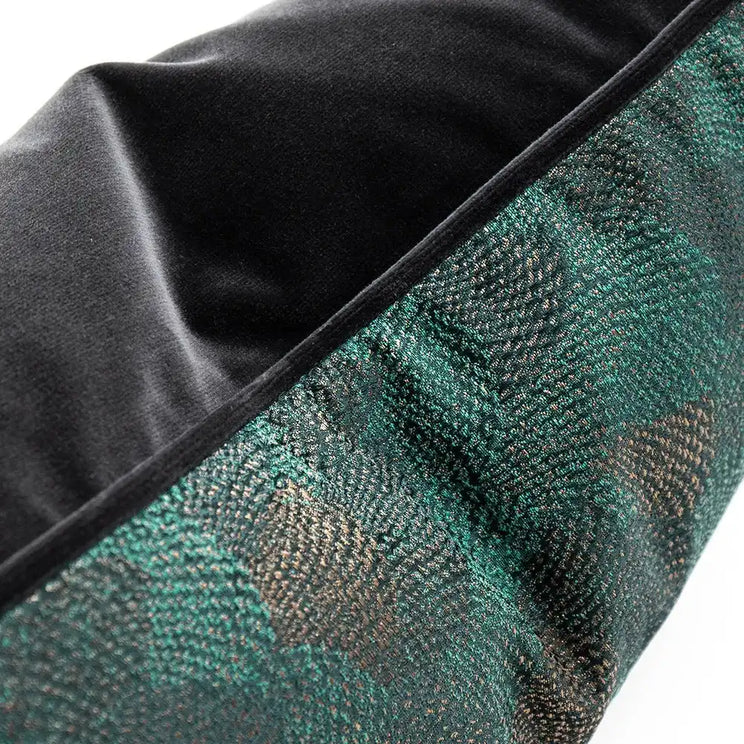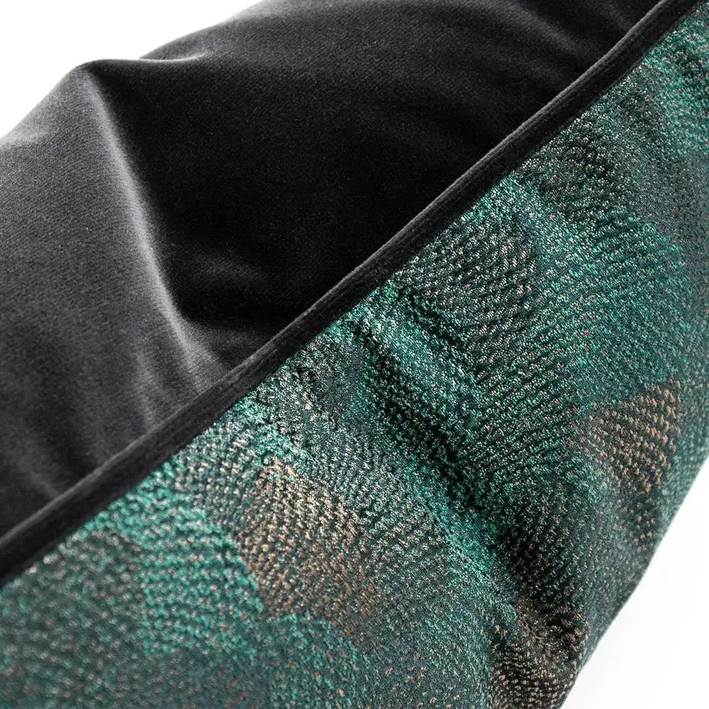 وسادة نينا ماتيس II مزينة بالصدف المميز وتأتي باللون الأخضر مع حواف أنبوبية متباينة وظهر مخملي أسود.