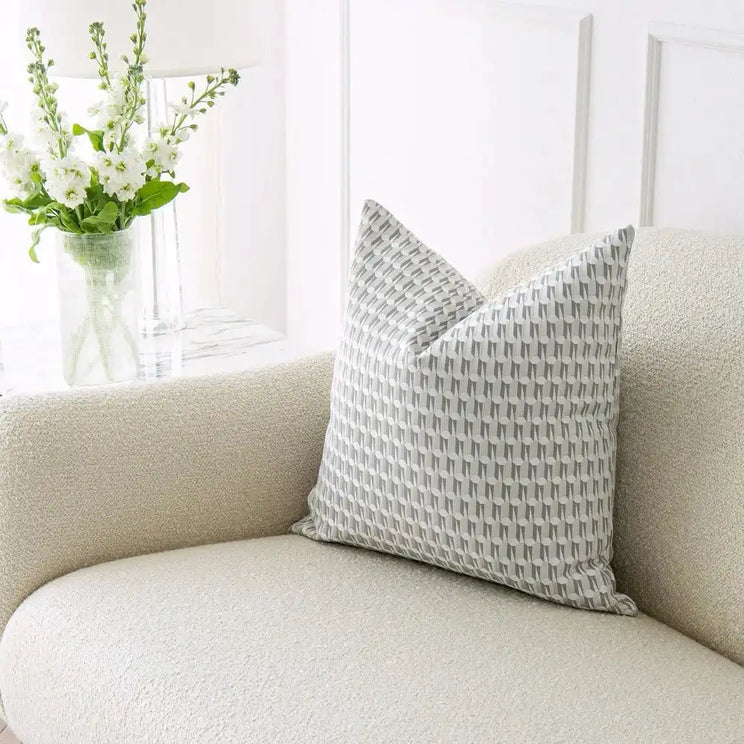 هذه الوسادة الرمادية هي قطعة كلاسيكية عصرية بنمط ثلاثي الأبعاد مع لمسات خفيفة من اللون الأزرق. نسجت من حرير فني، وتتميز الوسادة الزخرفية بلمسة لامعة لتضفي لمسة مصممة على مساحة المعيشة الخاصة بك.
