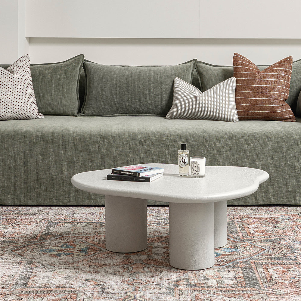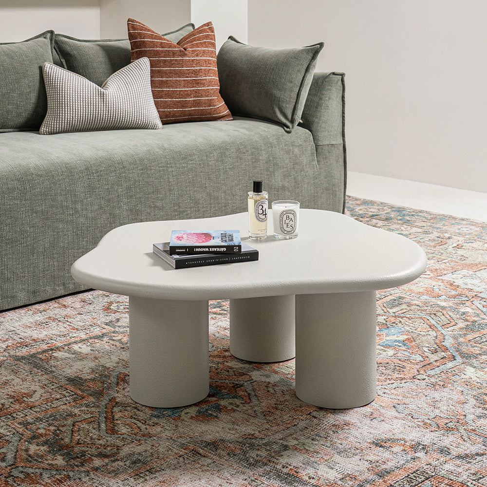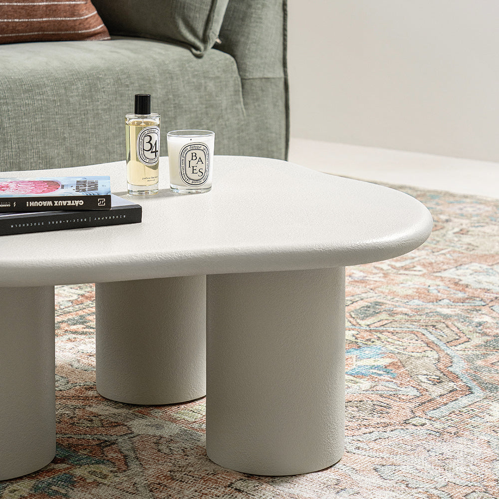 باللون العاجي المحايد، تناسب طاولة القهوة متوسطة الحجم هذه أي مساحة.