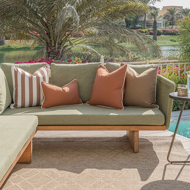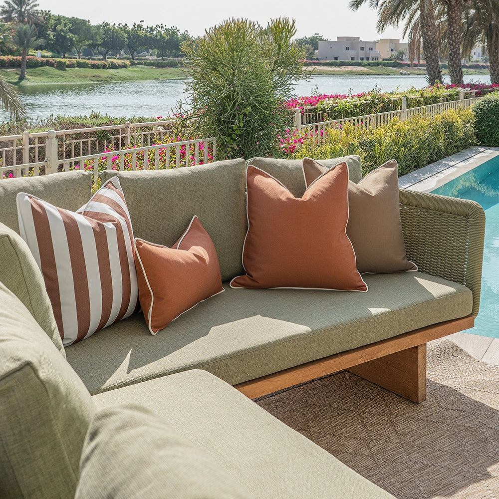 وسائد محشوة بالألياف ومقاومة للعوامل الجوية، تمنحك راحة تدوم طويلاً، وتعزز من أناقة المساحات الخارجية.