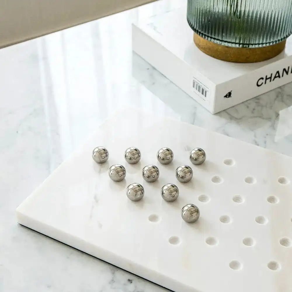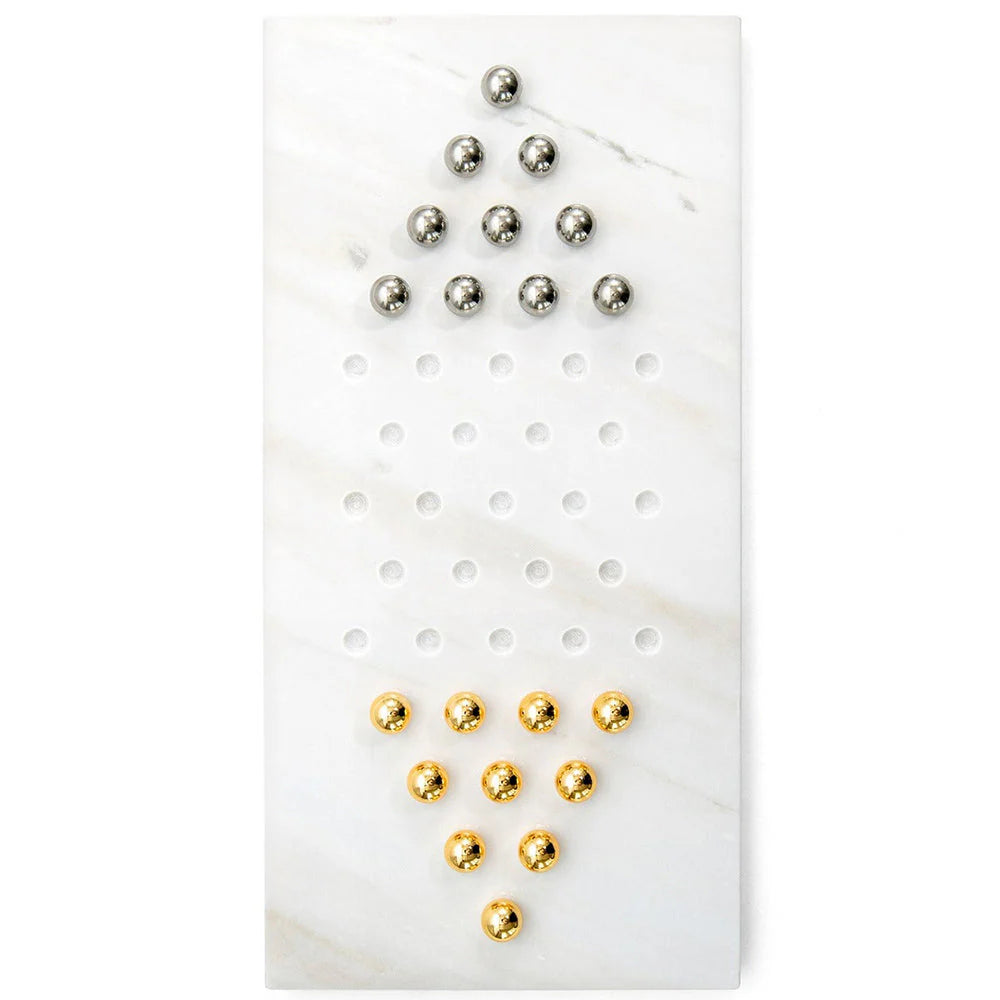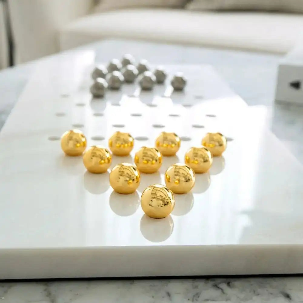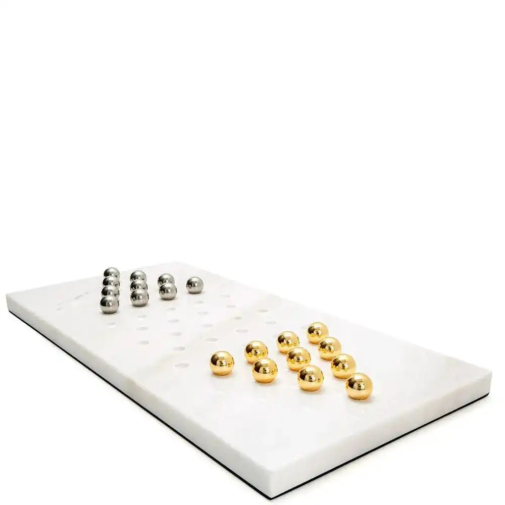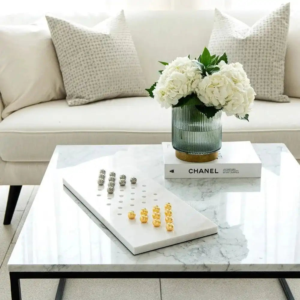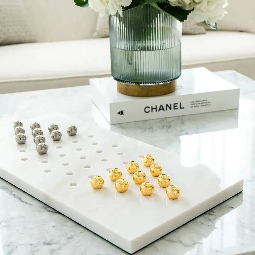 لوحة لعب بيضاء مع رخام ذهبي وفضي بتصميم فاخر ليتماشى مع ديكور منزلك الأنيق ويلفت نظر الضيوف.