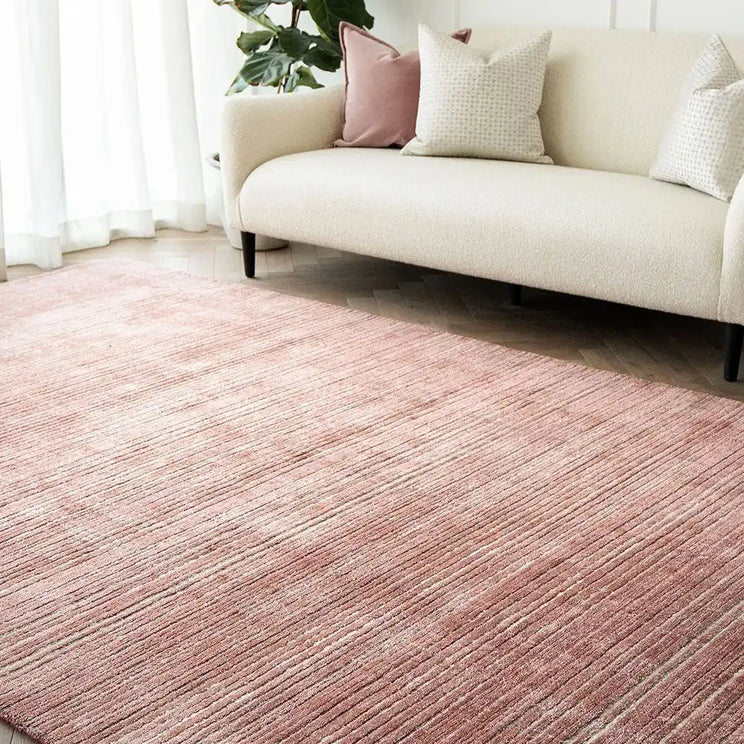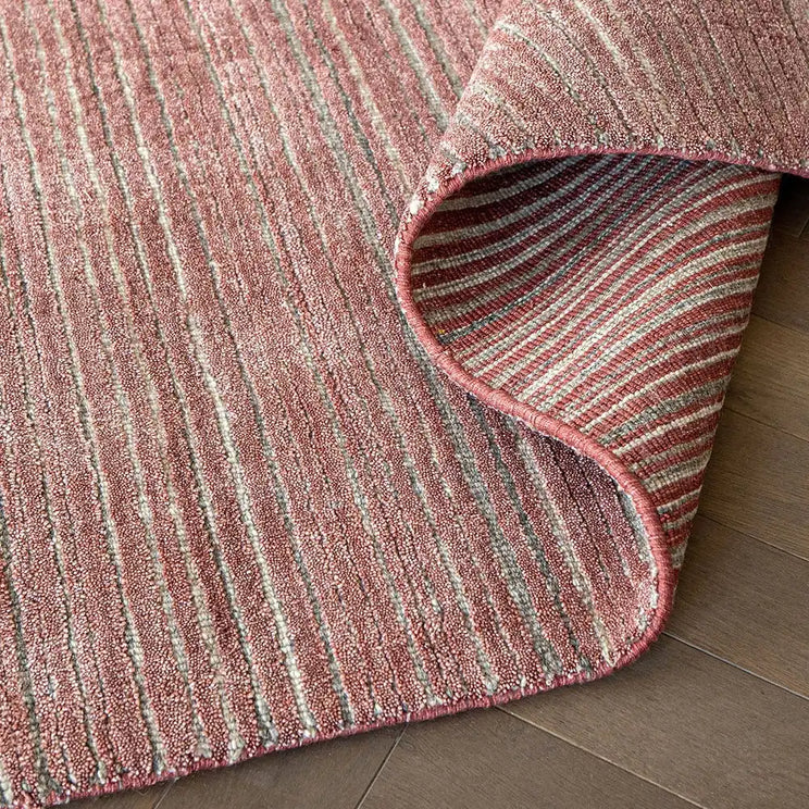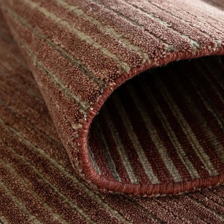 مصنوعة من مزيج من الحرير الصناعي والصوف الممشط، هذه السجادة المخططة تم صنعها يدويًا للحصول على احساس بالفخامة.
