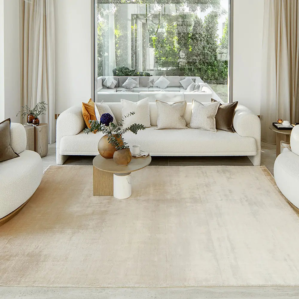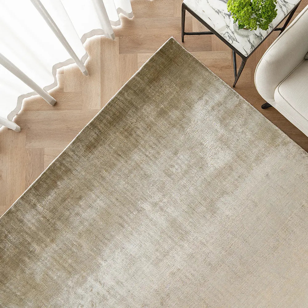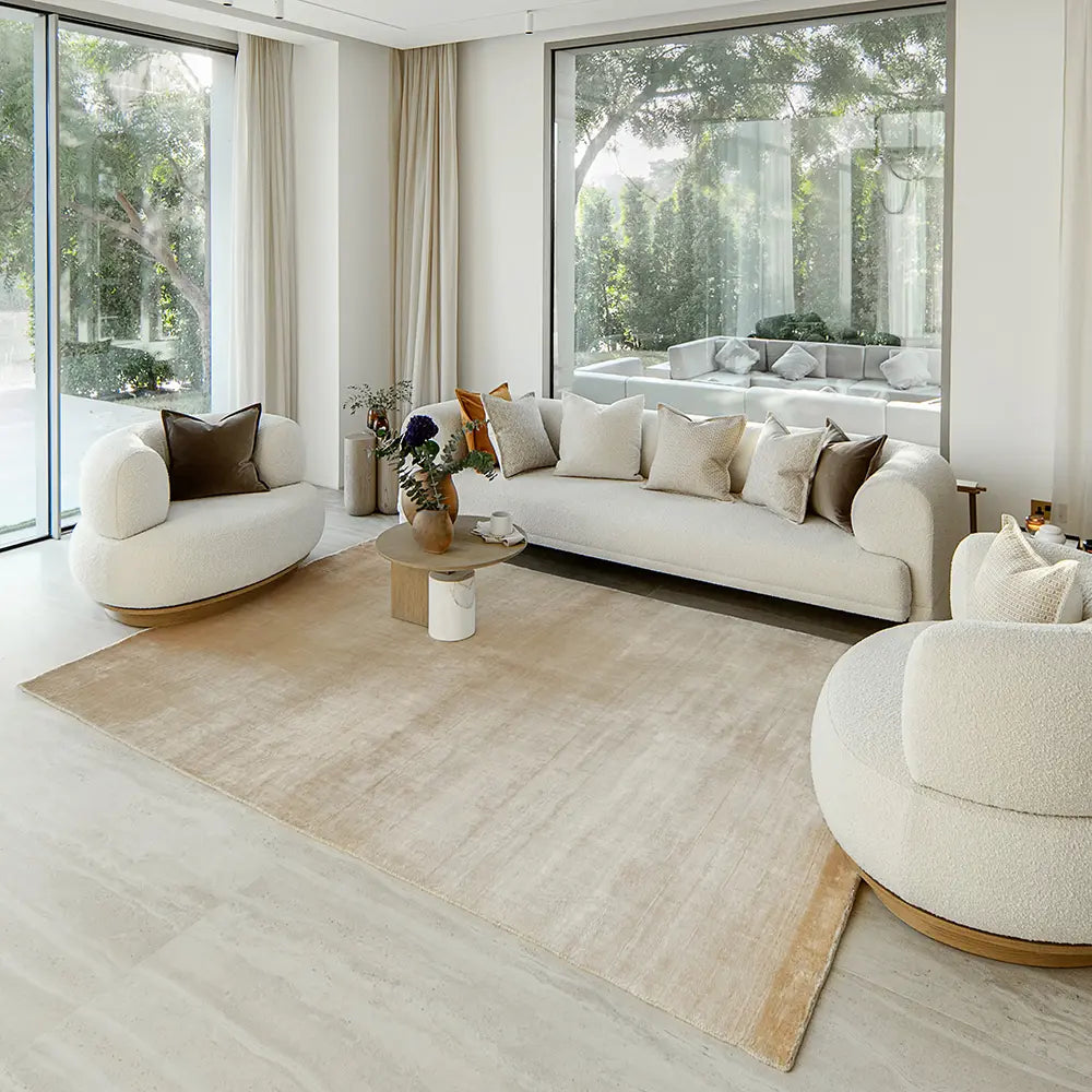 سجادة تأتي بدرجات من الذهبي والبيج وتمنح مظهر لامع إلى المكان.