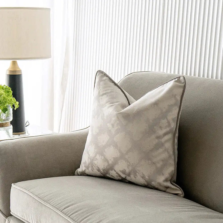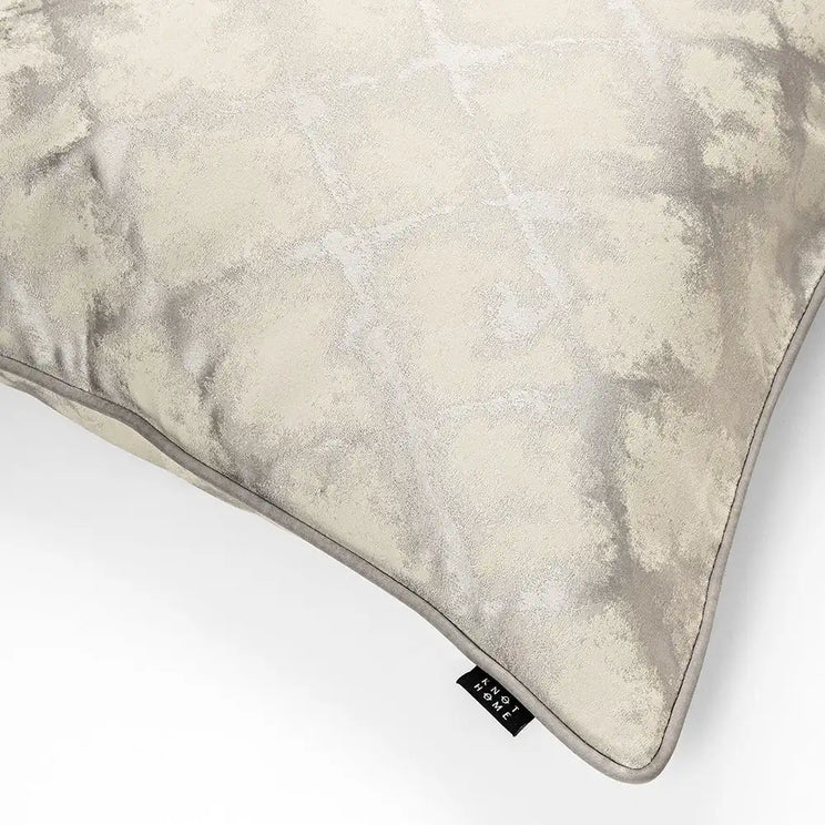 وسادة من اللون الفضي والكريمي تأتي بنمط متقاطع بالكامل مع تفاصيل مميزة لخطف أنظار ضيوفك في جميع الأوقات.