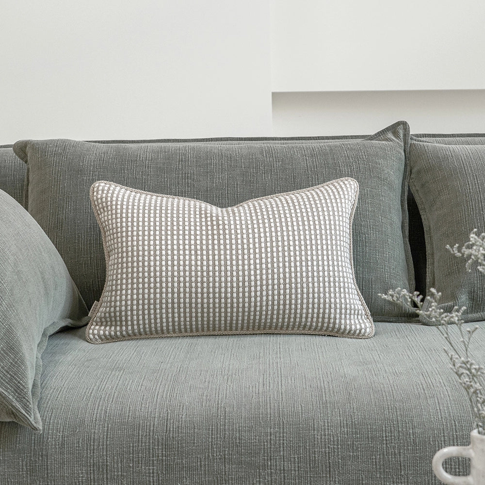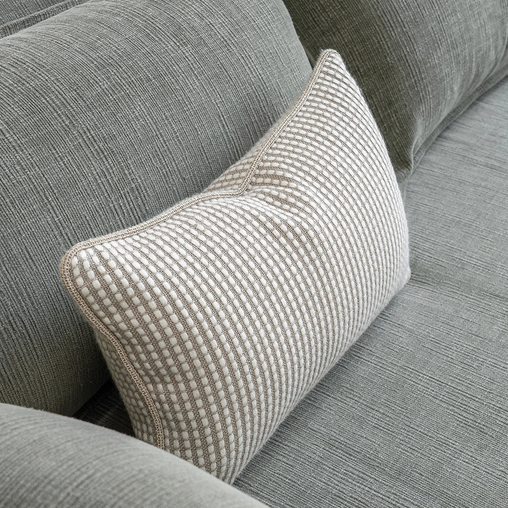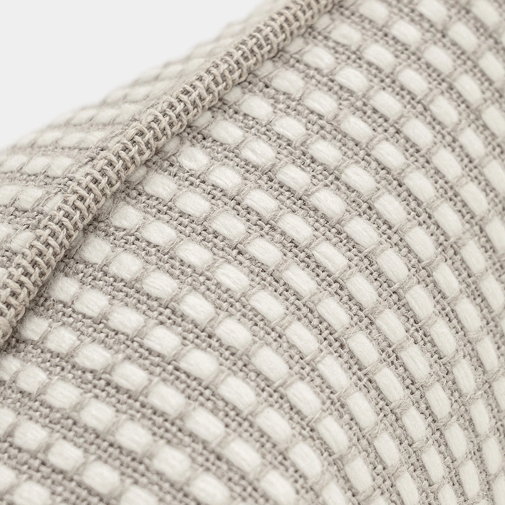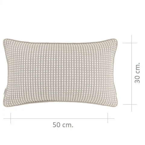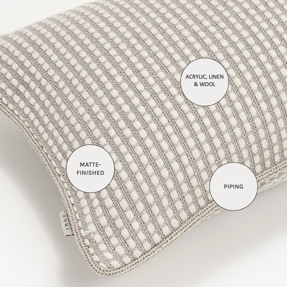وسادة بدرجات محايدة من البيج والأبيض ونمط شبكي والنسيج الصوفي تضفي الاحساس بالدفء. وهي وسادة عملية ومتعددة الاستخدامات تمنح الأناقة في أي مكان في منزلك.