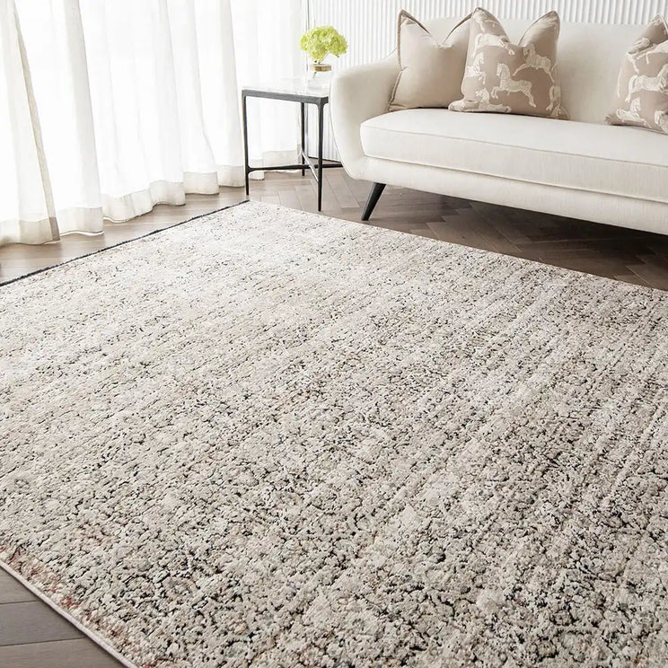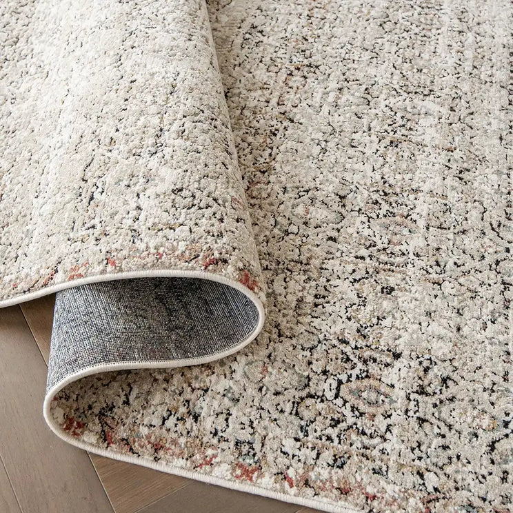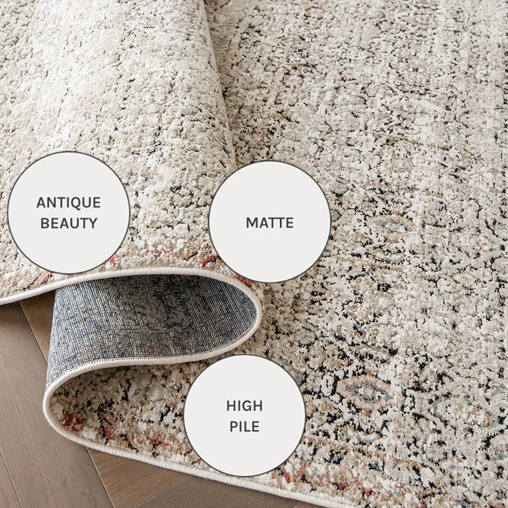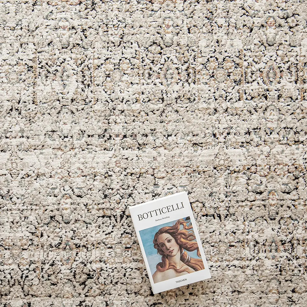 سجادة بنمط تقليدي ولون بيج هادئ يمنح السحر إلى المكان.