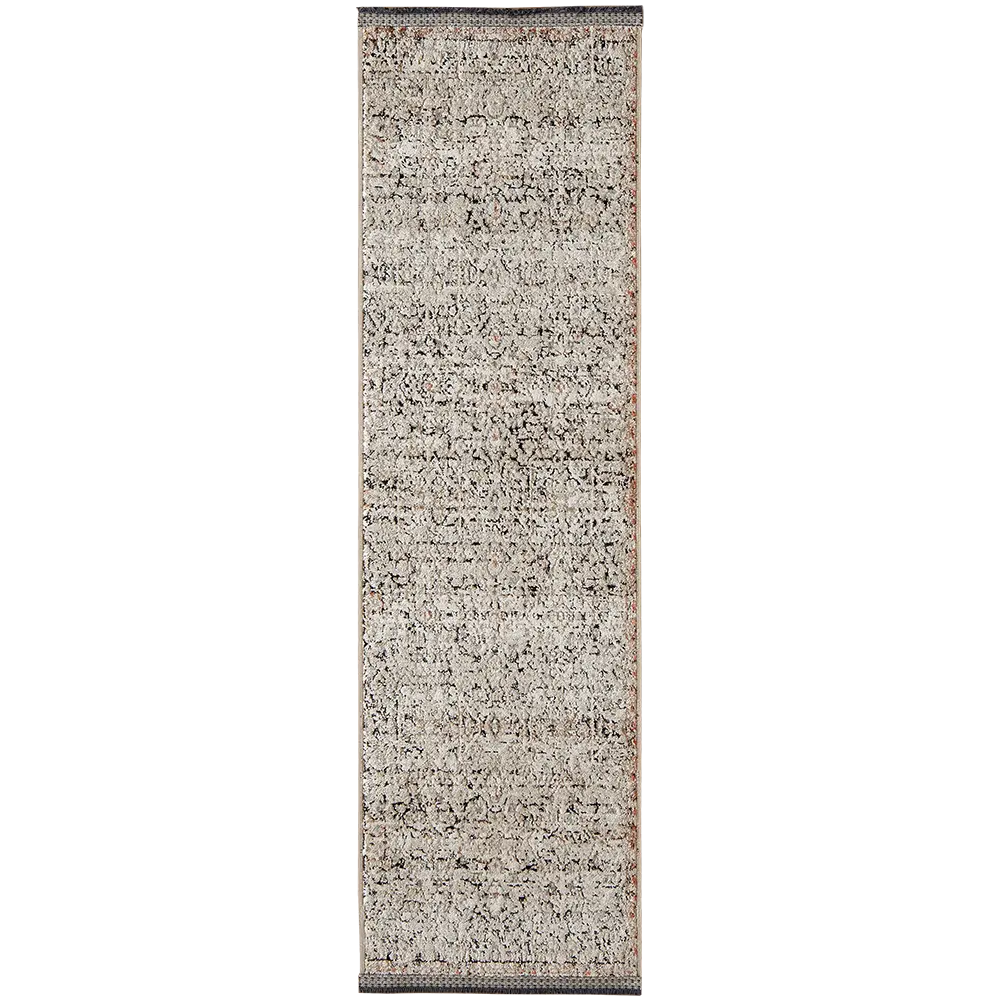 سجادة طويلة بنقشة تقليدية باهتة باللونين البيج والأسود