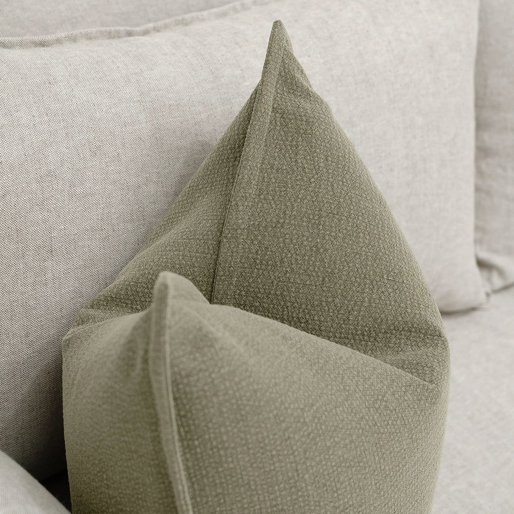 اضف المزيد من البهجة وإلى ديكورك مع هذه الوسادة بلون اليشم. مصنوعة من ألياف الكتان التي تسمح بالتهوية لإحساس مريح، وتأتي بدرجة خضراء مستوحاة من الطبيعة تضفي لمسة منعشة إلى مساحتك الداخلية.