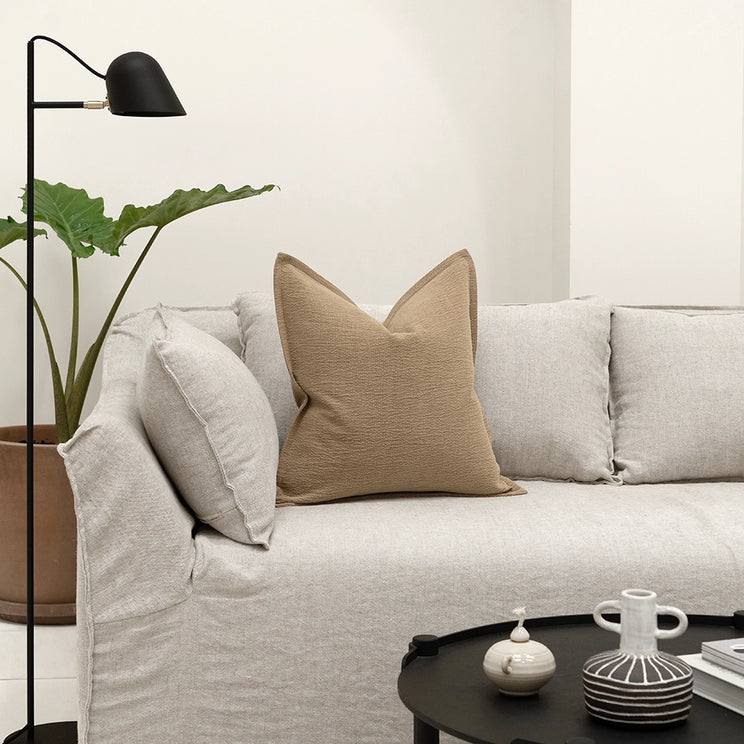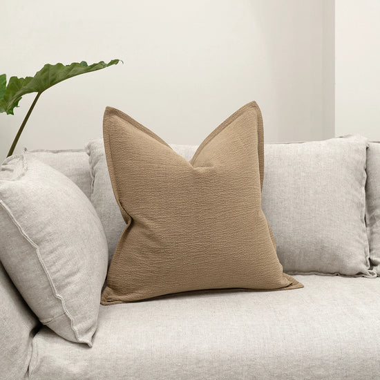 وسادة باللون البني الباهت من الكتان تضفي الدفء إلى الديكور الداخلي بالألوان المحايدة. مصنوعة من الكتان الطبيعي وتسمح بالتهوية.
