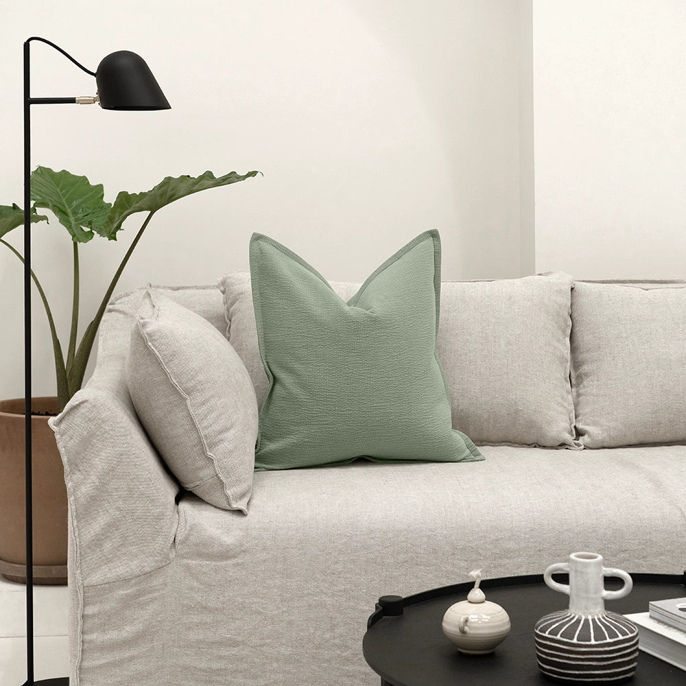 هل تريد تجديد ديكورك؟ ستعشق هذه الوسادة باللون الأخضر بدرجتها الهادئة والمنعشة، ومصنوعة من الكتان لتمنحك ملمسًا مريحًا وطبقة خفيفة من الملمس الطبيعي.