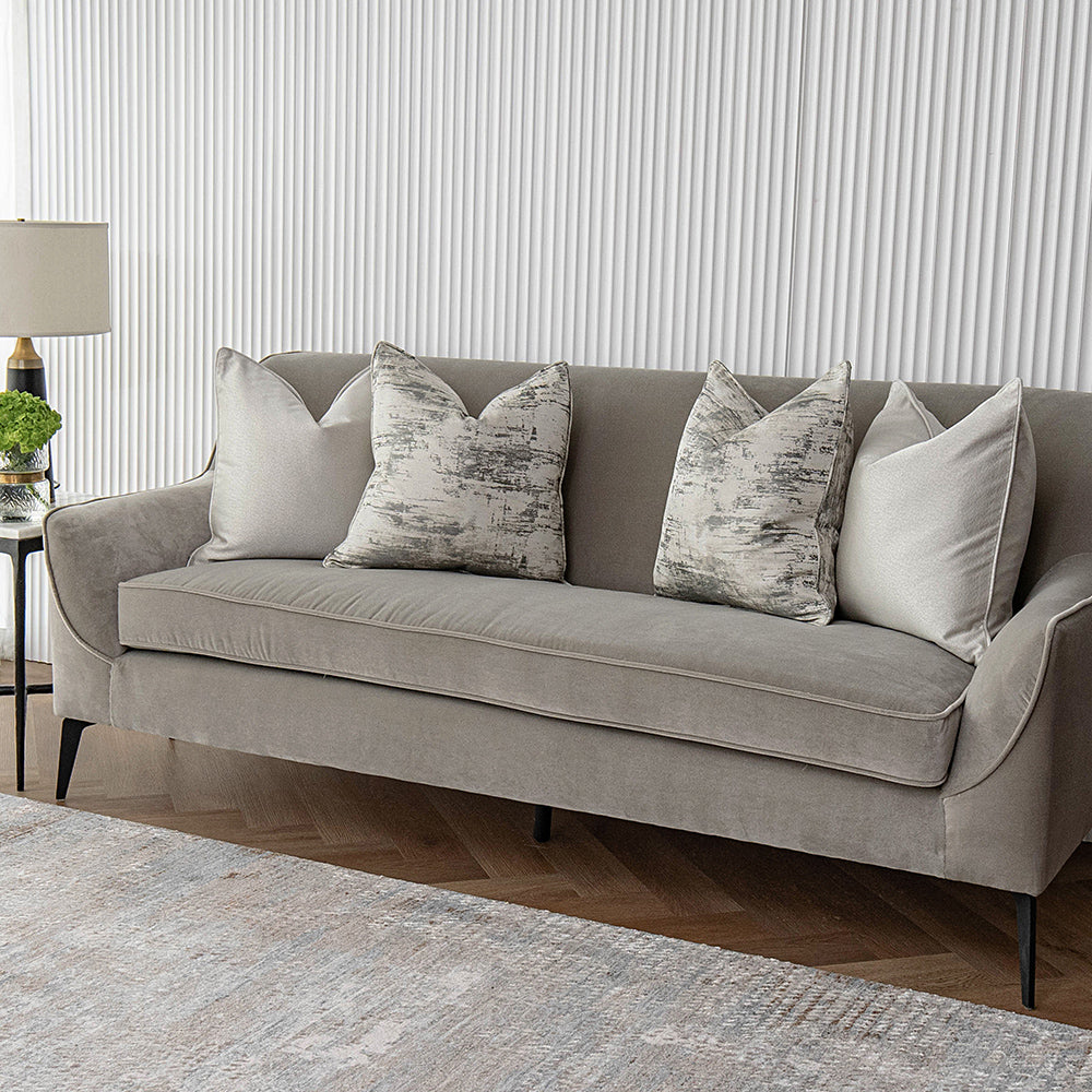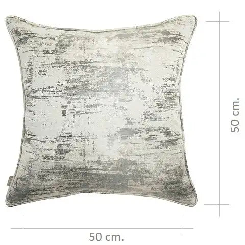 التصميم: وسادتان من نسيج الجاكارد باللون الفضي ووسادتان بتصميم بنمط مميز باللونين الرمادي والكريمي
