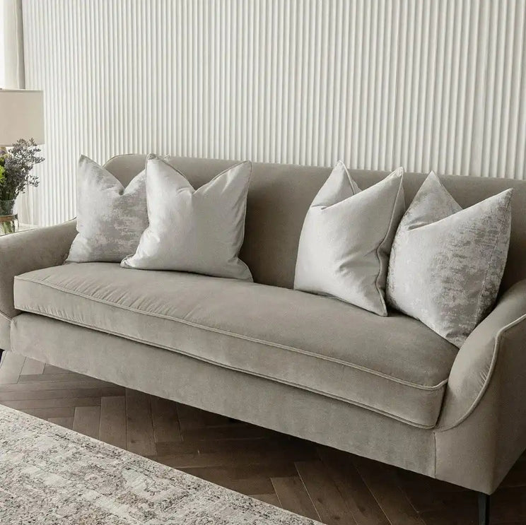 هذه المجموعة هي المفضلة لدى الجميع. تتضمن وسادتان فضيتان مع حواف أنبوبية ووسادتان فضية ورمادية بلون باهت بتصميم عصري وبسيط يضيف الأناقة إلى المكان.