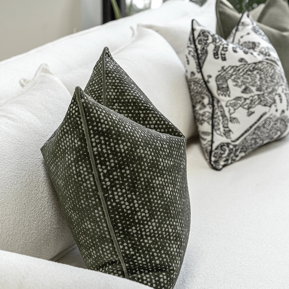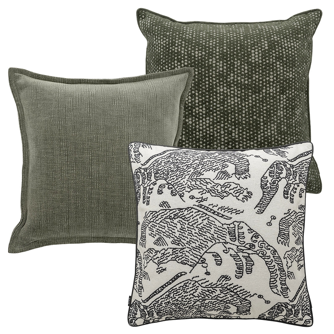 تضفي هذه المجموعة العصرية من الوسائد لمسة حيوية على غرفة المعيشة. تتضمن المجموعة المكونة من ثلاث وسائد وسادتين باللون الأخضر وواحدة بنقشة خطوط بالأبيض والأسود لتضفي لمسة شخصية على أي أريكة.