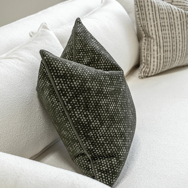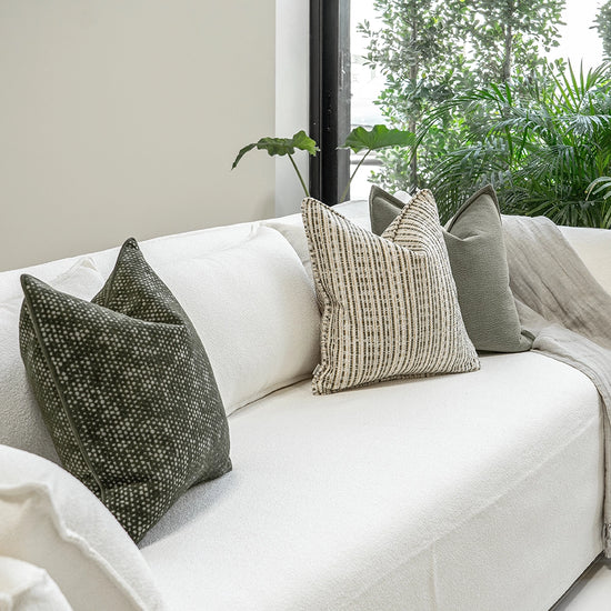 اصنع ملاذك الهادئ مع هذه المجموعة من الوسائد الخضراء. بدرجات الأخضر الفاتح والزيتوني والأخضر الميرمي، تجمع هذه المجموعة المكونة من ثلاث وسائد بين الوسائد السادة والمزخرفة لتعكس الأجواء الطبيعة.