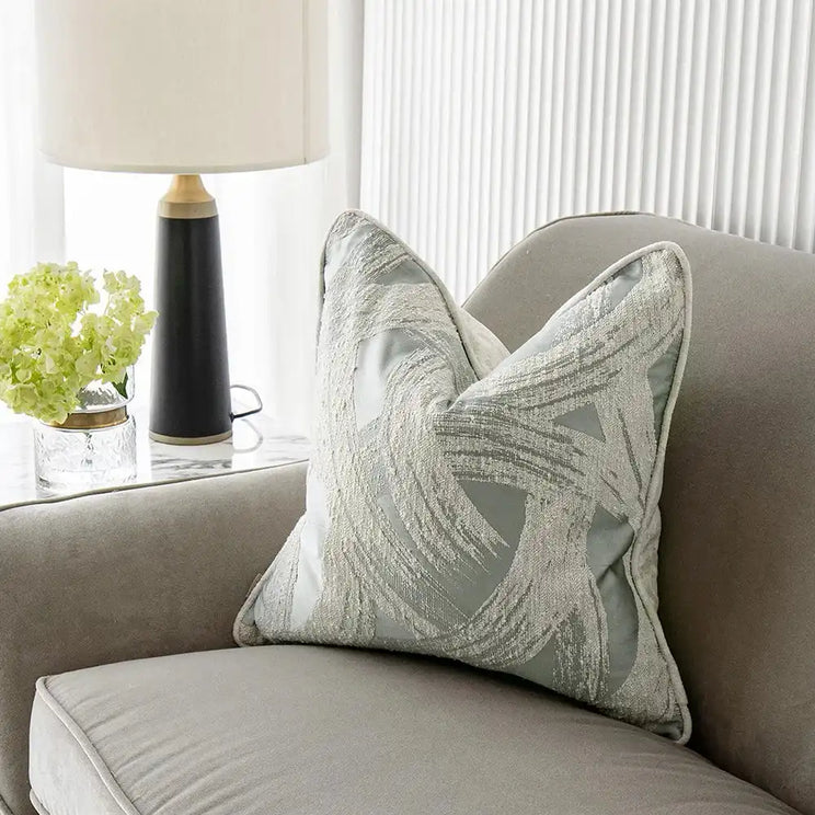 أضفي لمسة من الفخامة إلى ديكور منزلك مع وسادة تانيا كانوفا التي تأتي بلون الأزرق الباستيل والأبيض.