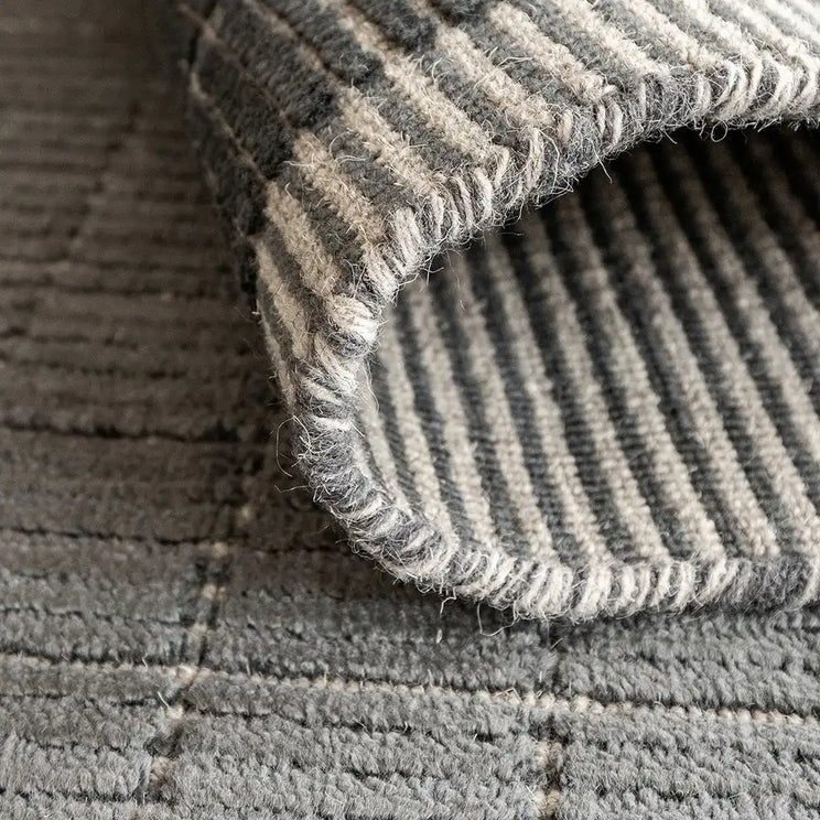 سجادة من مزيج من الصوف والحرير الصناعي، وقد تم صنعها يدويًا لإضفاء إحساس فاخر.
