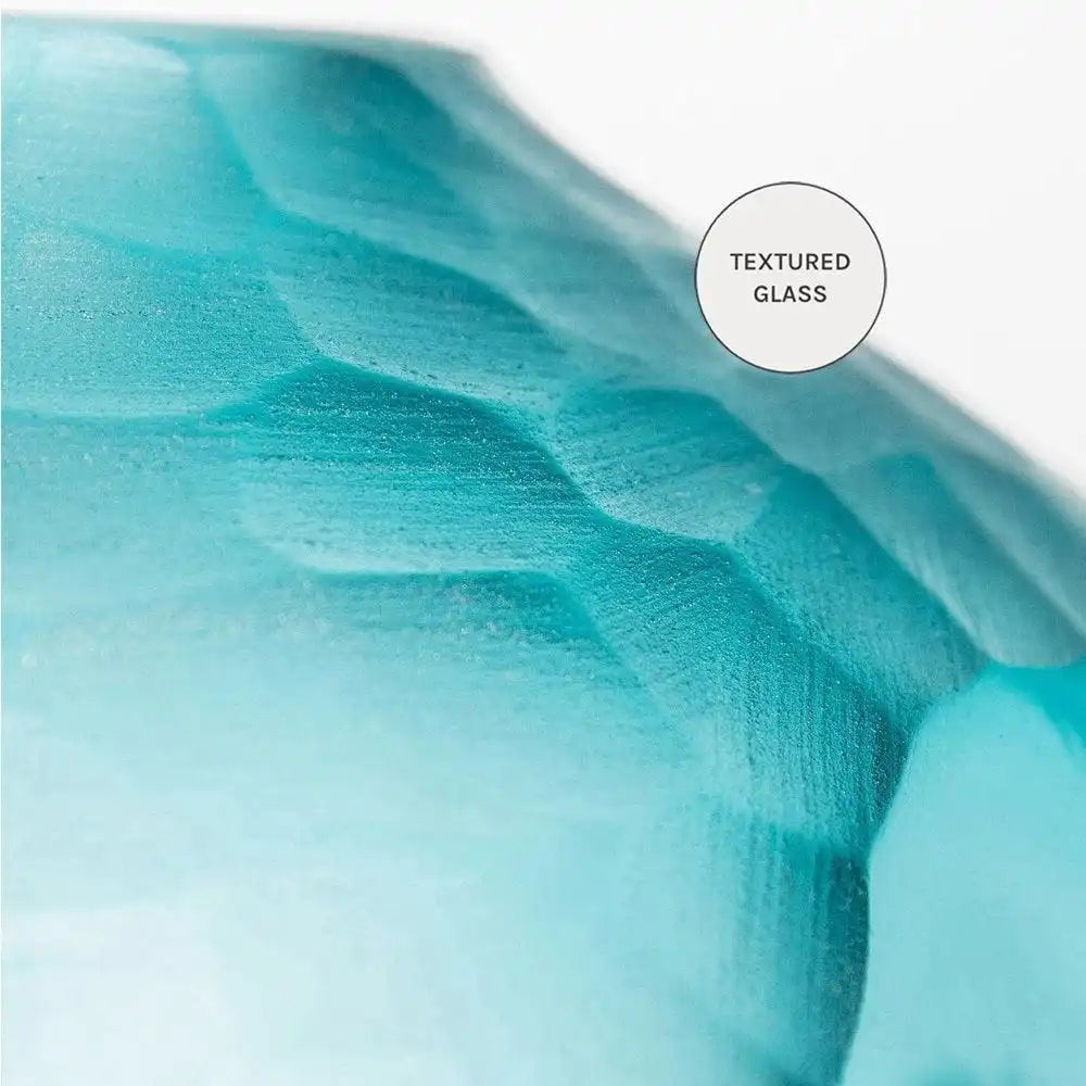 التصميم: مزهرية زجاجية مزخرفة باللون الفيروزي