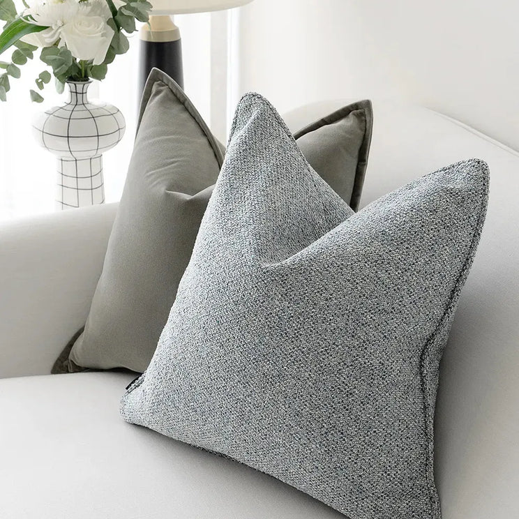 التصميم: وسادتان من الجاكار الأزرق الدنيم ووسادتان من المخمل الرمادي