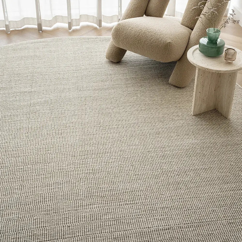 اضف المزيد من الفخامة إلى ديكور منزلك العصري مع هذه السجادة من الصوف الخالص. تأتي بخطوط رفيعة باللون البيج الباهت الأنيق والرمادي الداكن لتضفي مظهر حيوي. هذه السجادة هي ما يحتاج إليه كل منزل.