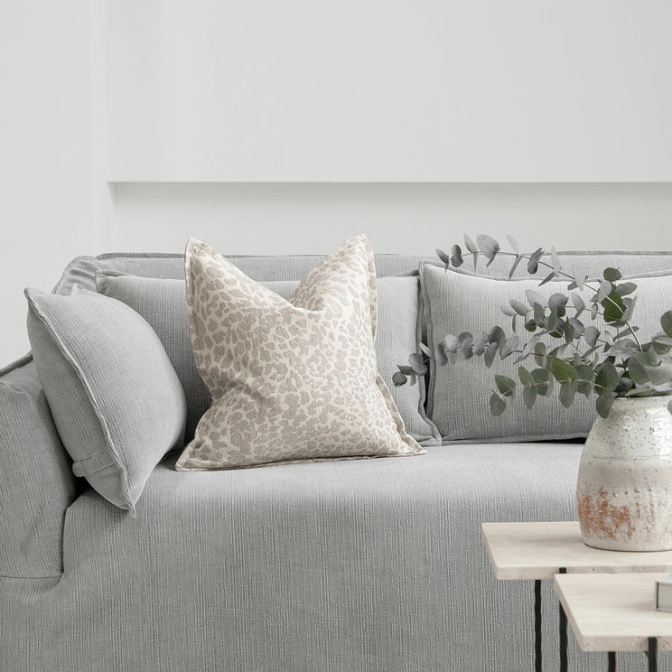 التصميم: تتميز بنمط نقطي طبيعي خفيف منسوج مباشرة في القماش، يضيف عمق مميز دون تباين حاد. النمط المنتشر ذو الطابع الفني يمنح الوسادة بيانًا راقيًا وبسيطًا، بينما تحافظ الخلفية بنفس اللون على مظهر متناسق وهادئ.