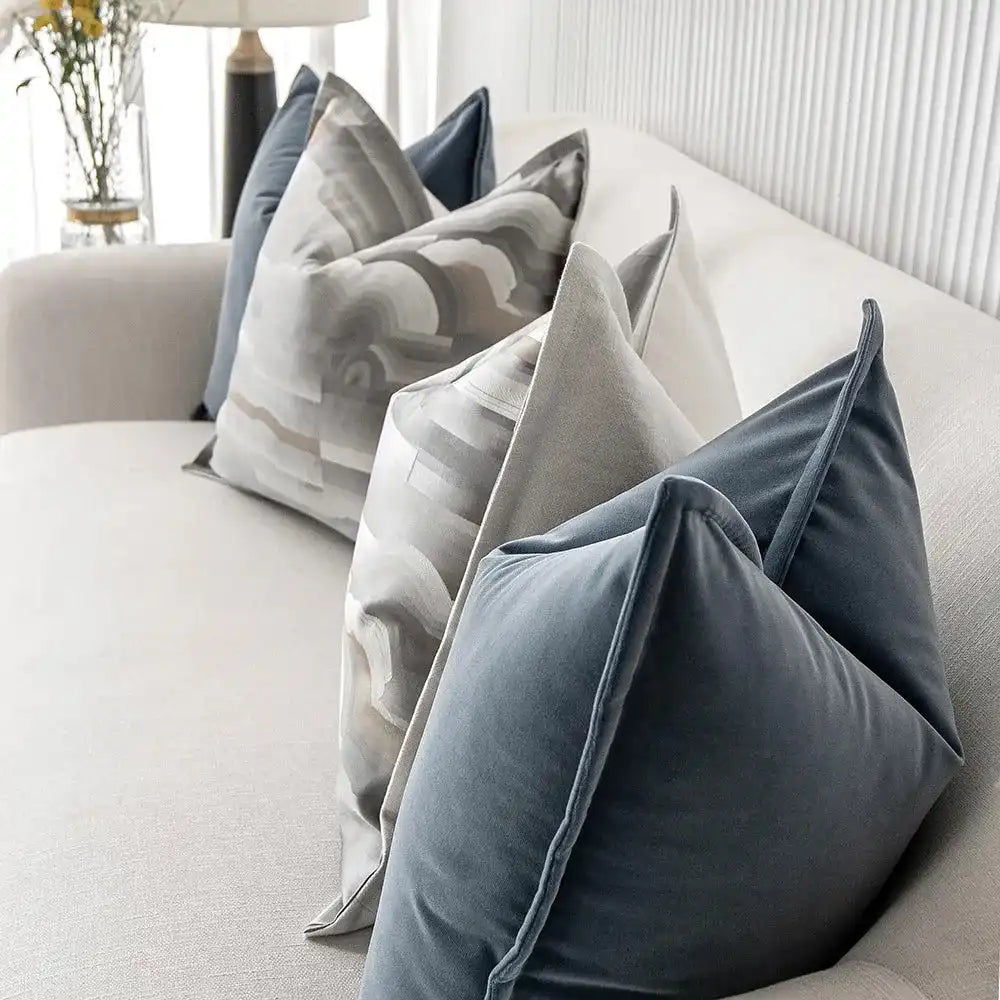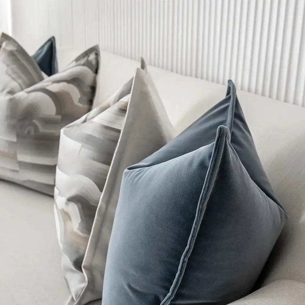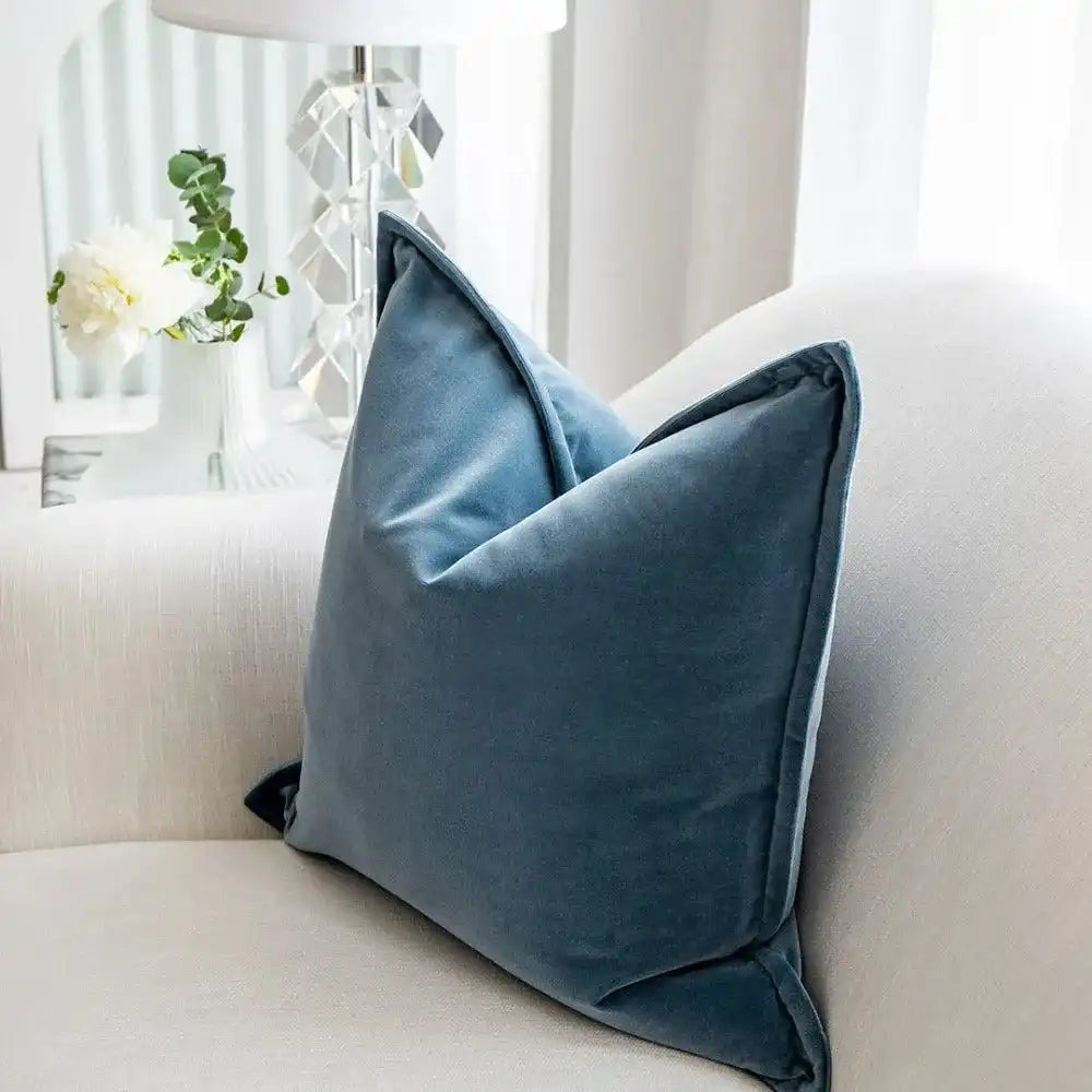وسائد من المخمل باللون الأزرق مع تفاصيل السحاب