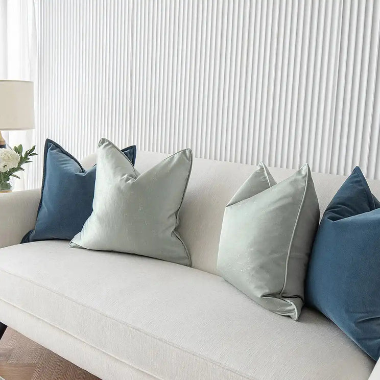 وسائد من المخمل باللون الأزرق والباستيل مع نمط متعاكس