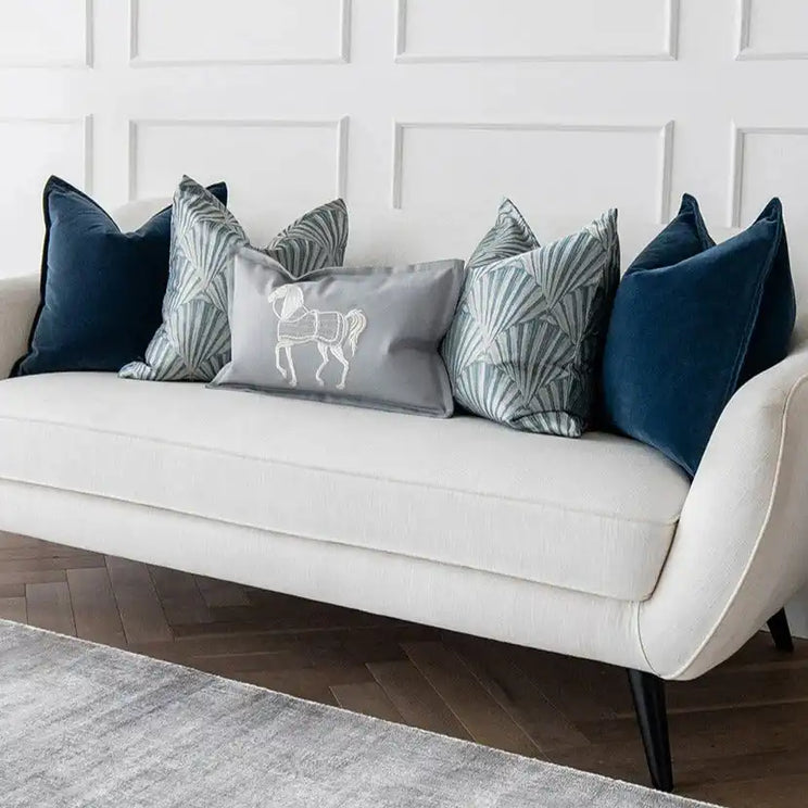 وسائد من المخمل باللون الأزرق مع صدف وحصان مدروز