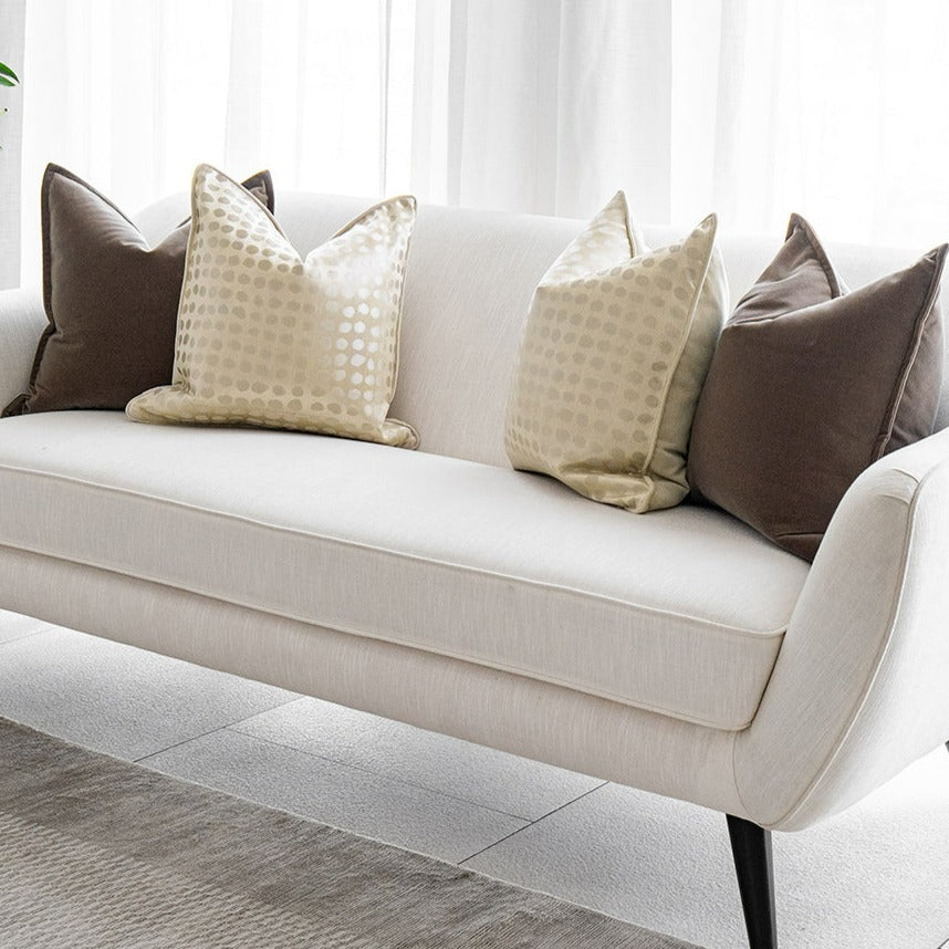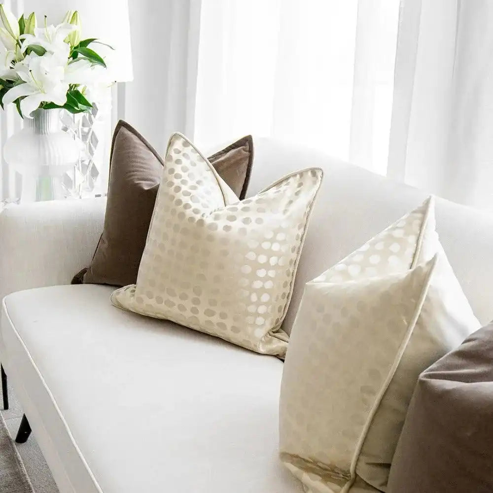 التصميم: وسادتان مخمليتان باللون البني ووسادتان منقوشتان بنقاط ذهبية وظهر مخملي