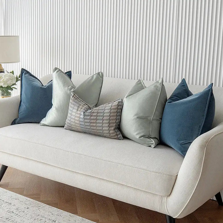 وسائد مخملية بلون فضي-أزرق وبنمط متعاكس