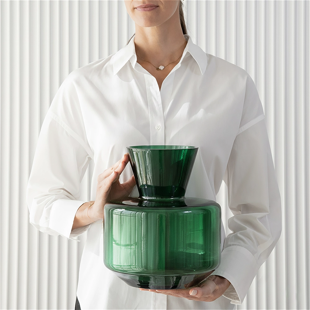 التصميم: زهرية زجاجية معاصرة بقاعدة أسطوانية وفتحة واسعة