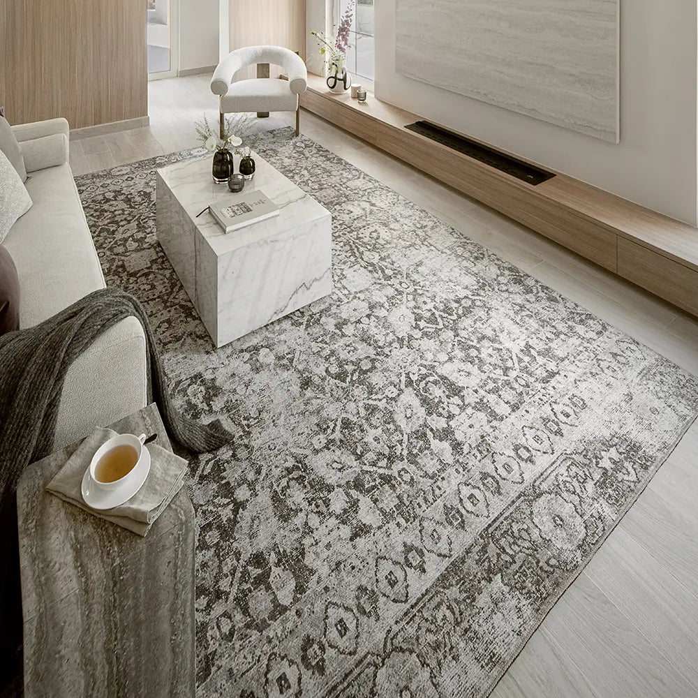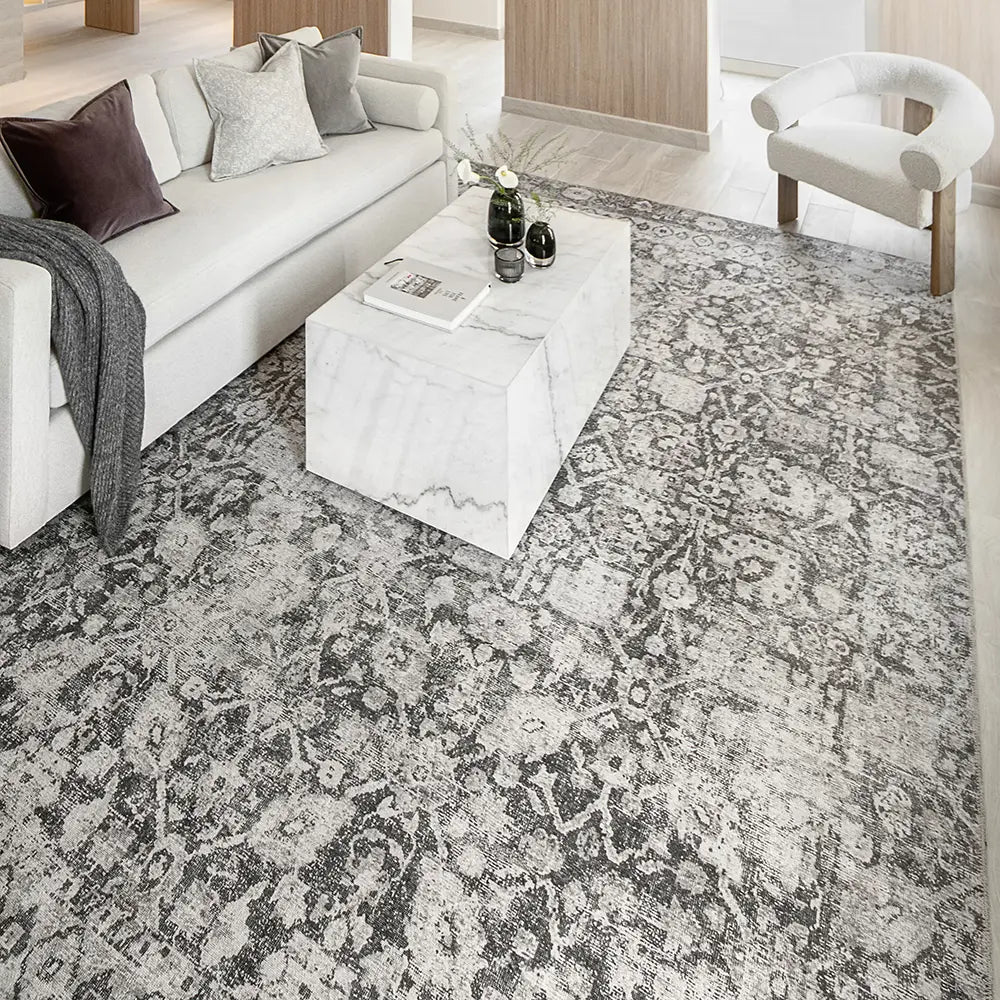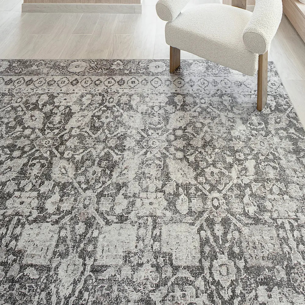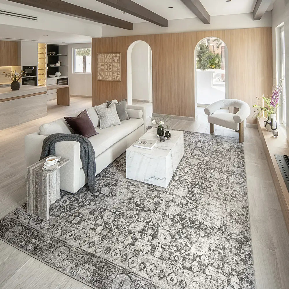 مصنوع من الألياف الحديثة، هذا السجاد الباهت هو تصميم كلاسيكي تم تحديثه ليتناسب مع المنازل العصرية.