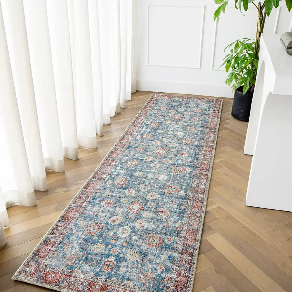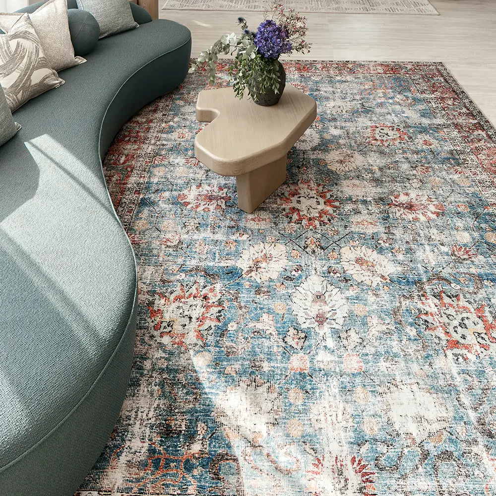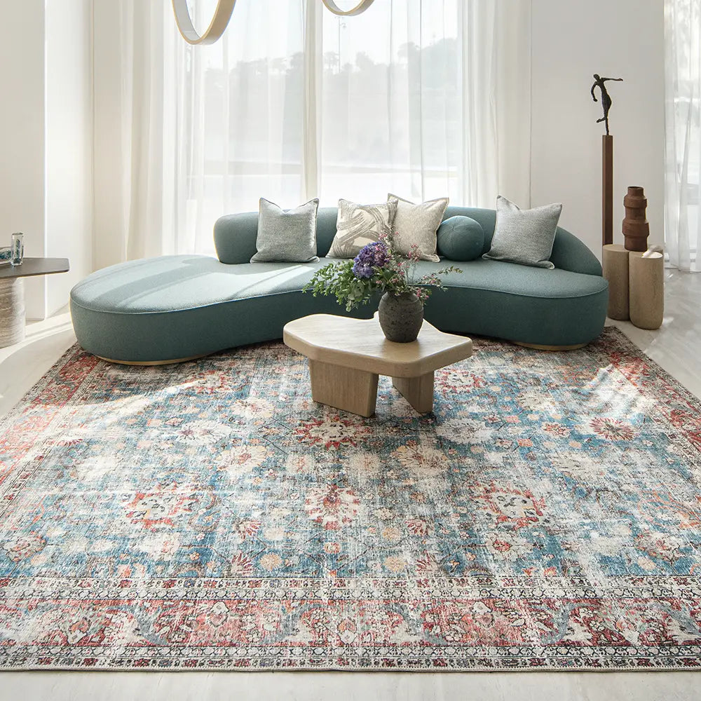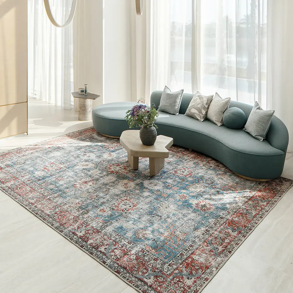تسجادة كلاسيكية باللون الأحمر والأزرق مع اللون البرتقالي، ستضيف لمسة من الألوان إلى مساحة المعيشة الخاصة بك.