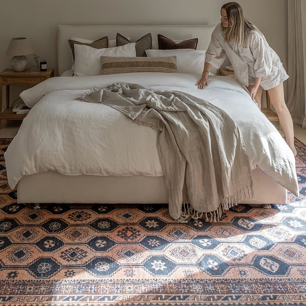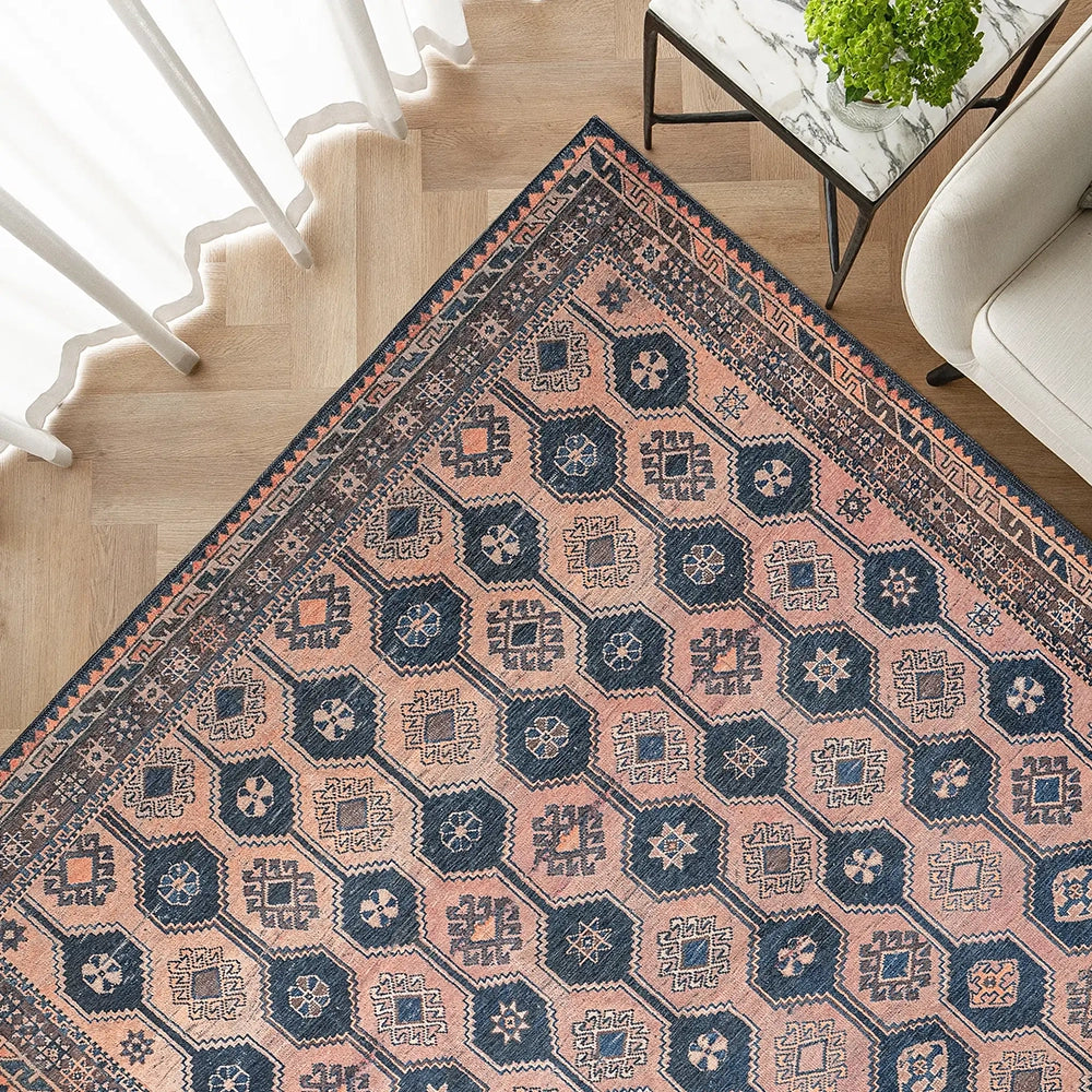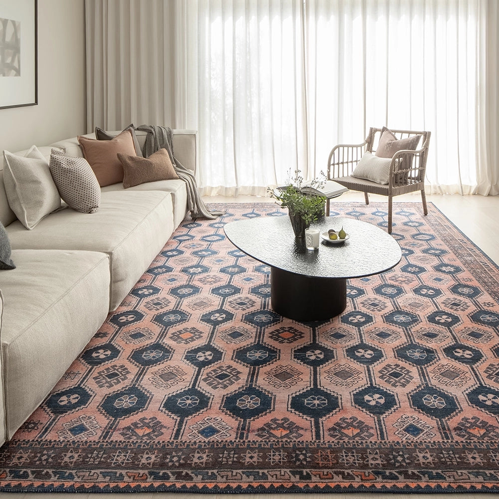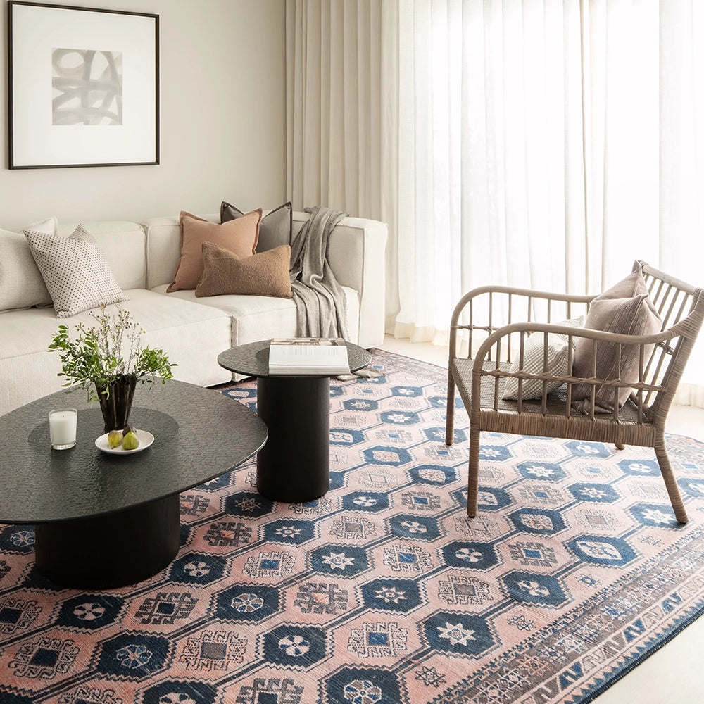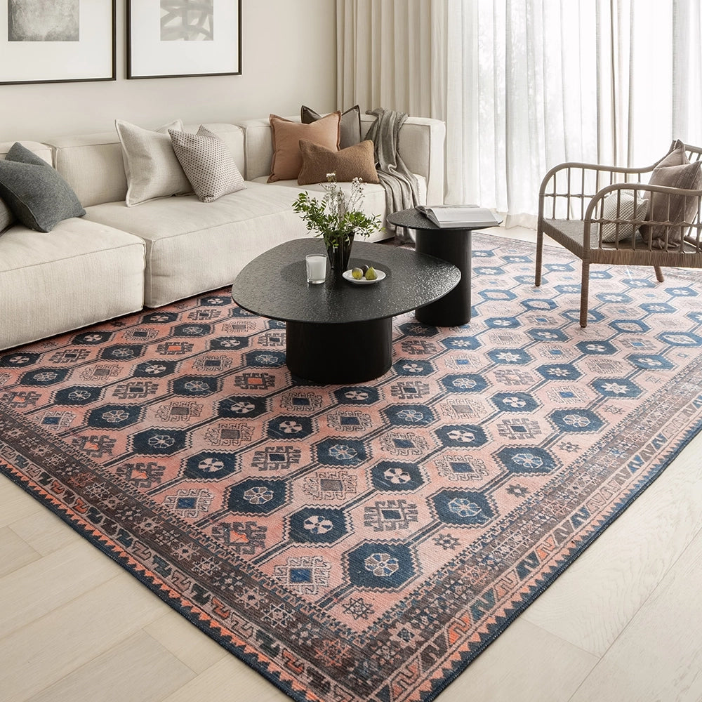 أضف لمسة من الدفء إلى ديكورك مع هذه السجادة العتيقة. بتوليفة أنيقة من اللون الوردي والأزرق، صُنعت هذه السجادة التقليدية من مواد عصرية لتصبح قطعة خالدة تضفي جمالًا وراحة على أي مساحة في منزلك.