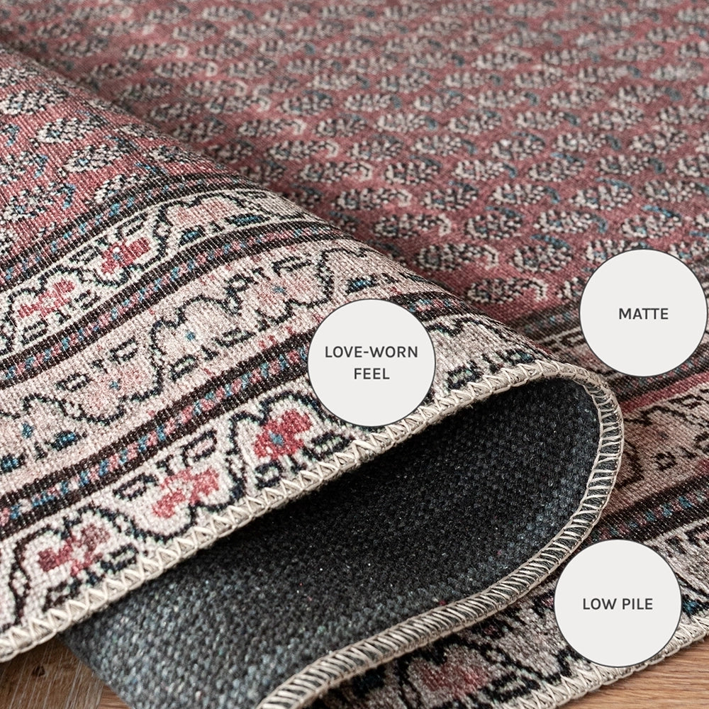 بتصميمها الكلاسيكي بنقشة البيزلي في لوحة ألوان متجددة، تمثل هذه السجادة باللون الأحمر المائل للرمادي مزيجًا راقيًا من الطراز العتيق واللمسة العصرية. تضيف السجادة لمسة من الدفء لأي غرفة في منزلك.